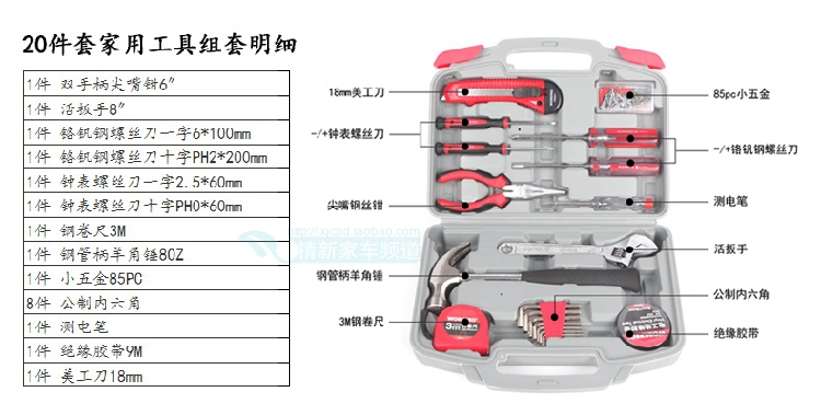 Wankebao 수동 가정용 도구 세트 20 조각 수리 도구 상자 세트 가족 예비 도구 상자 조합스토어 가기