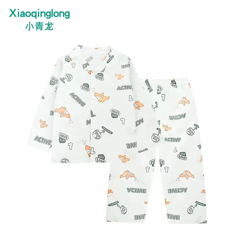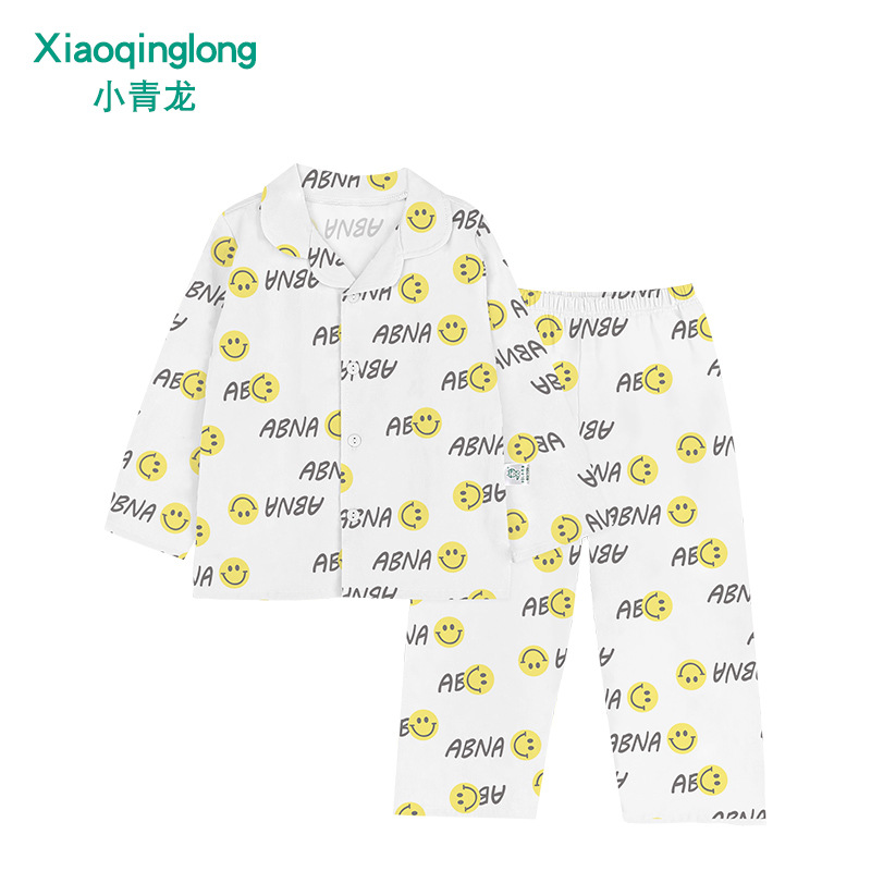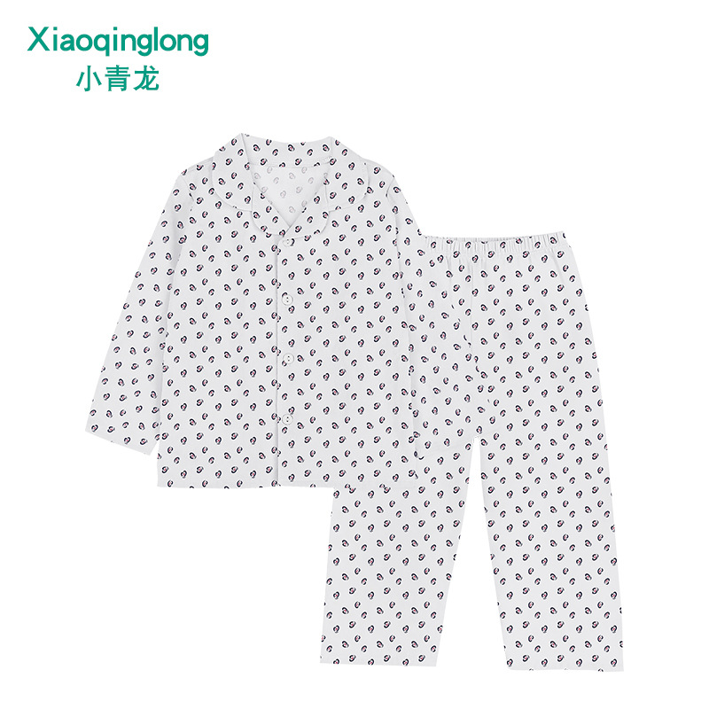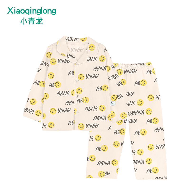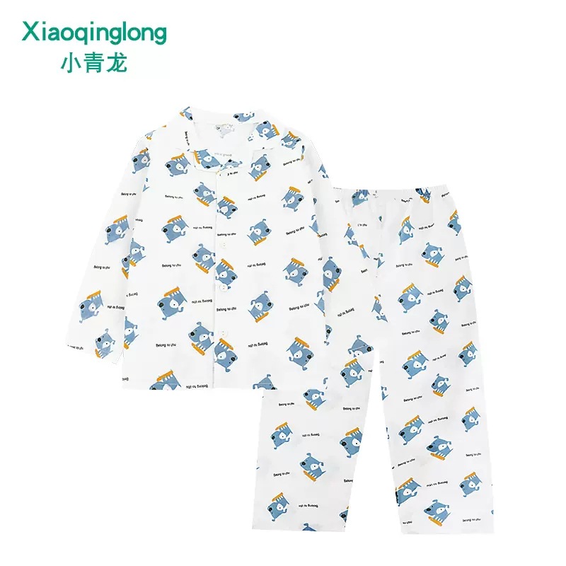 리틀 칭롱 봄 새로운 소년과 소녀 중 큰 아이 캐주얼 풀 코튼 얇은 옷깃 홈 잠옷 세트