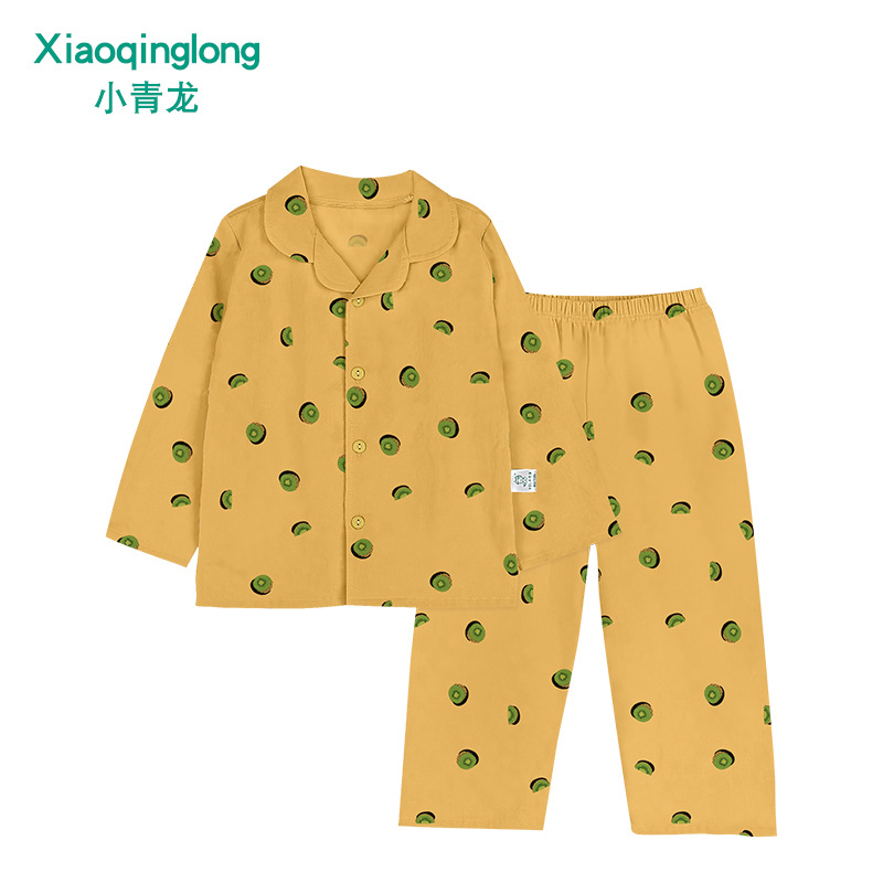 리틀 칭롱 봄 새로운 소년과 소녀 중 큰 아이 캐주얼 풀 코튼 얇은 옷깃 홈 잠옷 세트스토어 가기