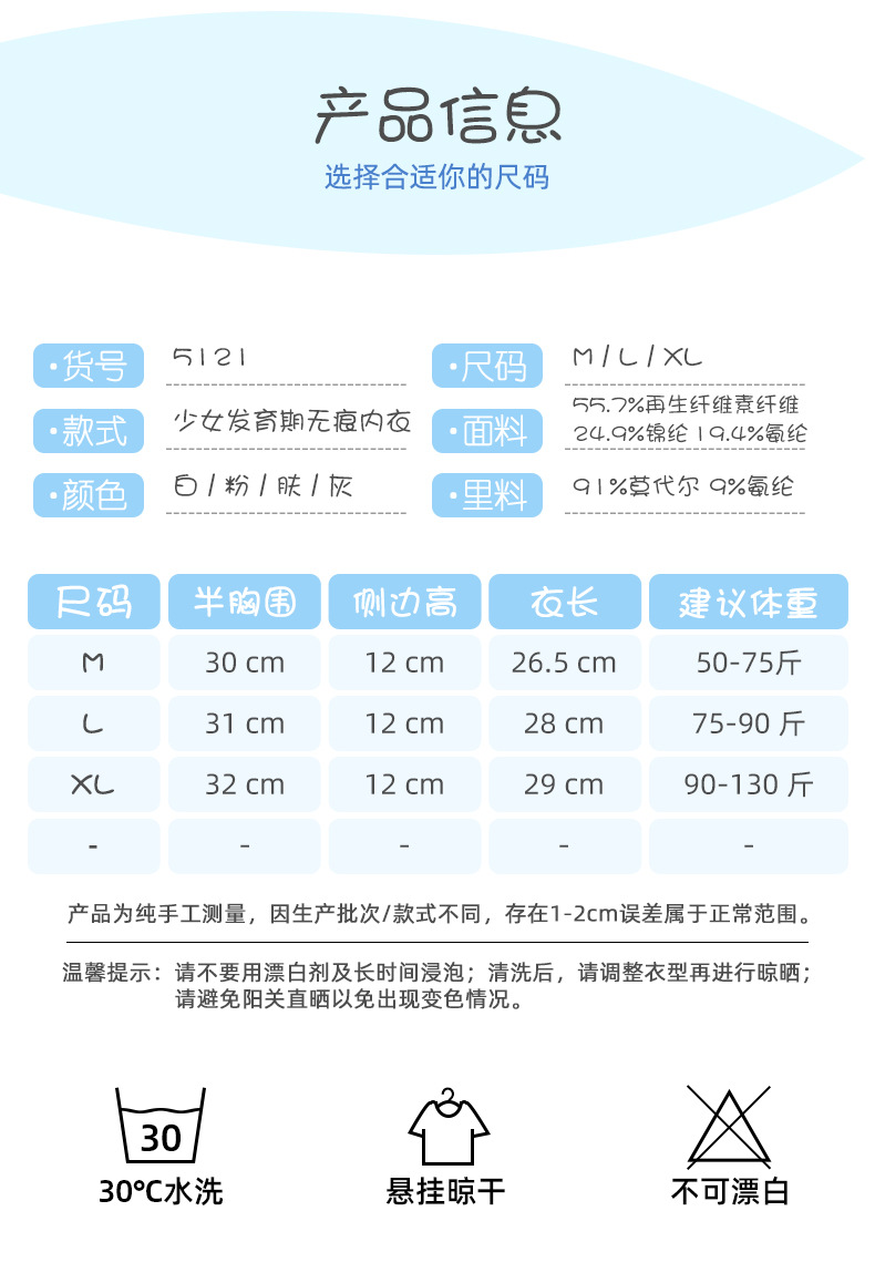 여자 속옷 발달 학생 소녀 사춘기 추적 소녀 속옷 발달 아이스 실크 어린이 브래지어