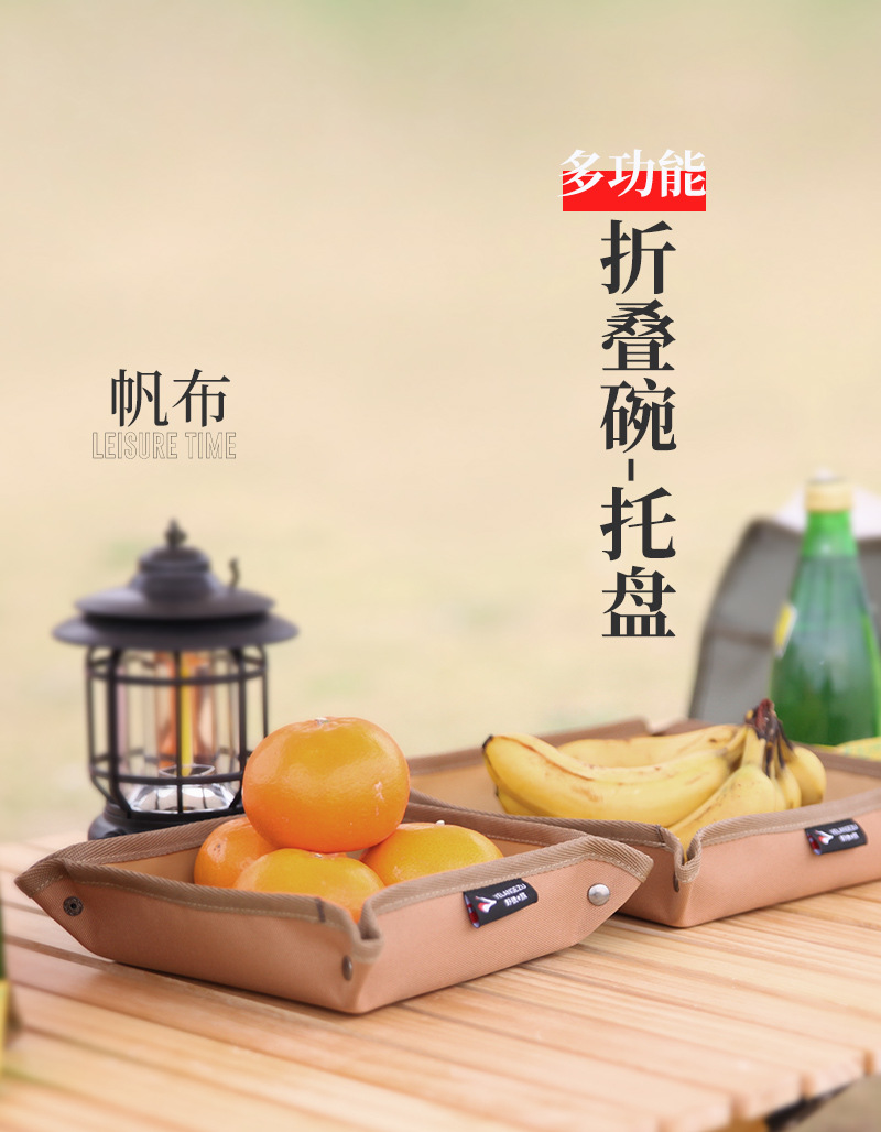야외 식탁 캔버스 트레이 야외 캠핑 캠핑 여행 장비 액세서리 일상 용품 보관 상자 접는 그릇스토어 가기
