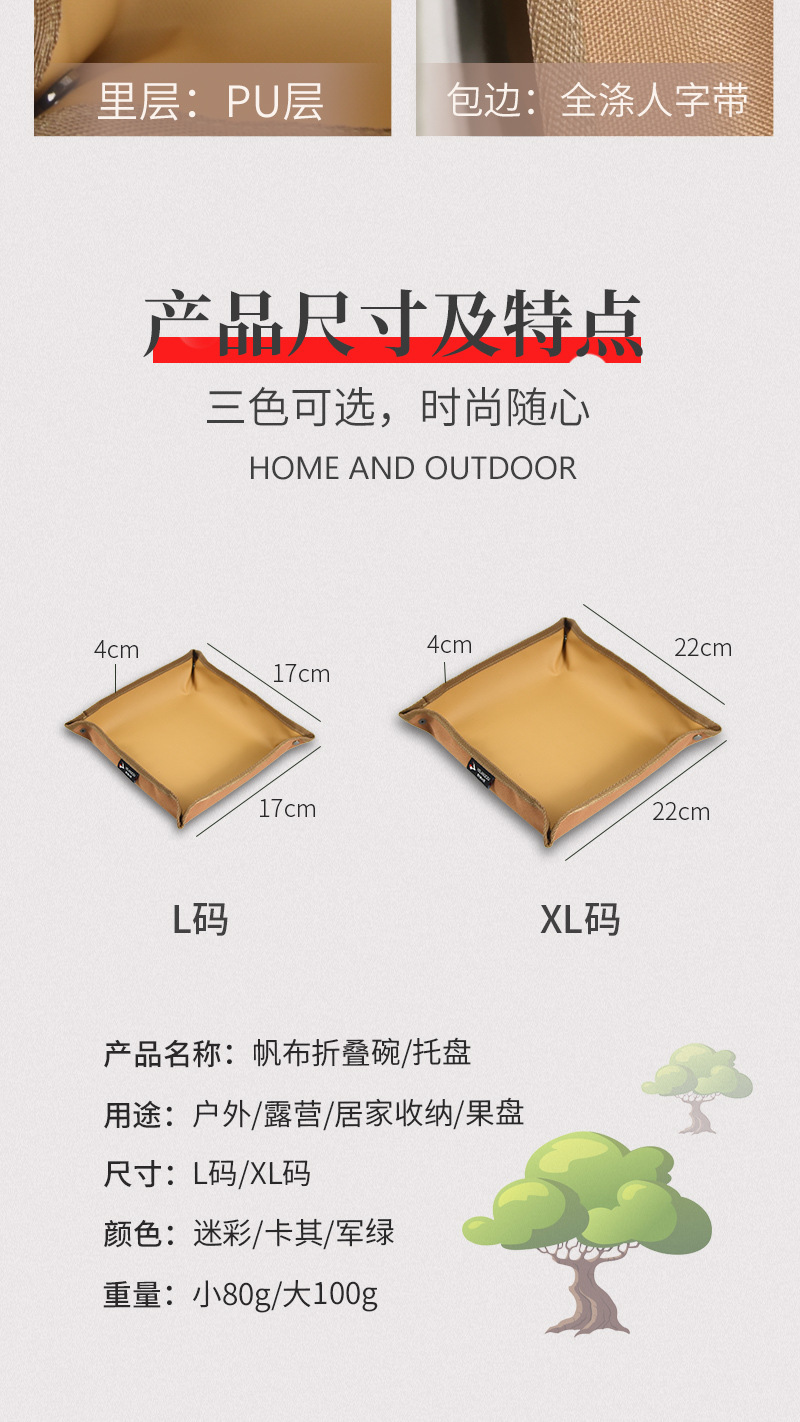 야외 식탁 캔버스 트레이 야외 캠핑 캠핑 여행 장비 액세서리 일상 용품 보관 상자 접는 그릇