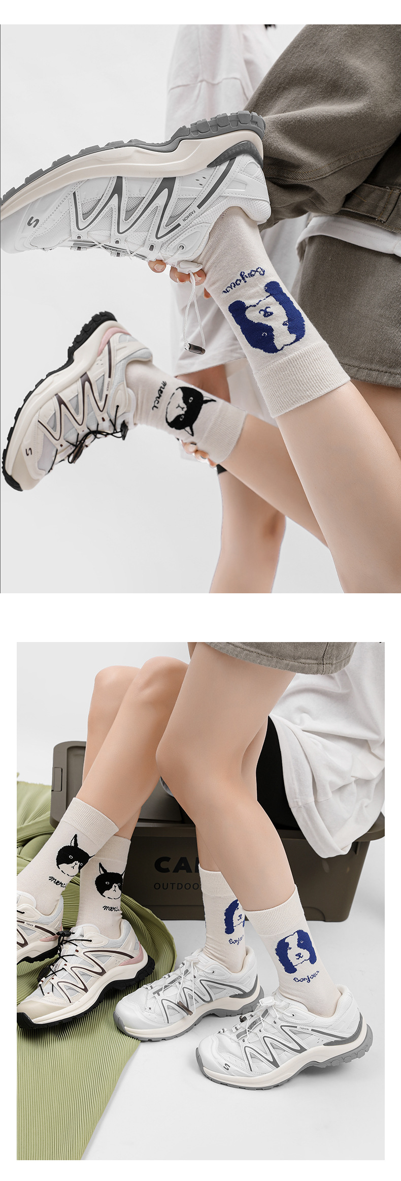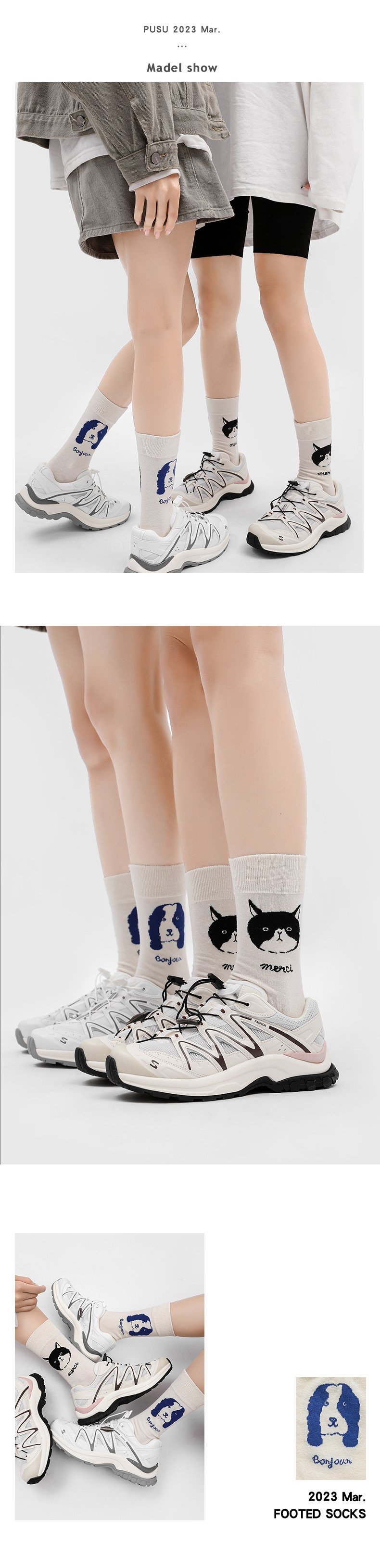 양말 여성용 봄과 가을 중간 길이 양말 유행 커플 양말 면 맞춤 새끼 고양이 강아지 거리 모든 경기 스타킹스토어 가기