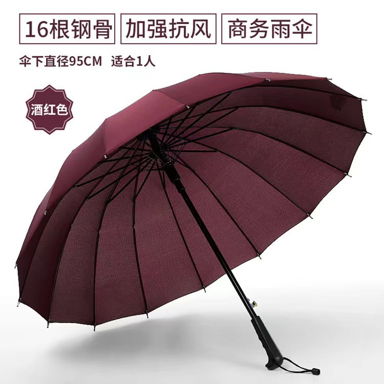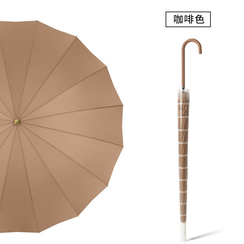 16 뼈 작은 신선한 긴 손잡이 직선 우산 대형 곡선 핸들 바람 방지 광고 양산 우산 사용자 정의 로고