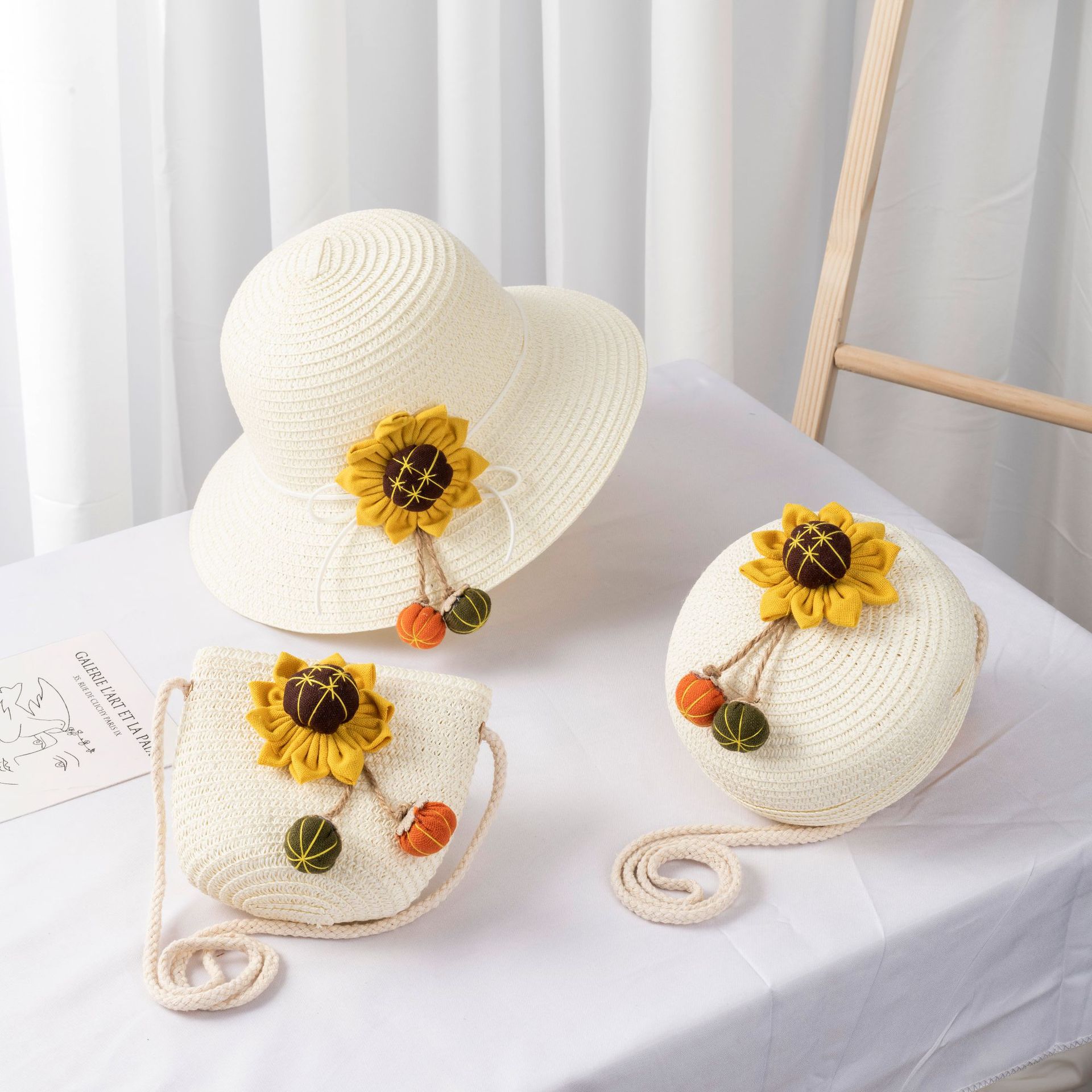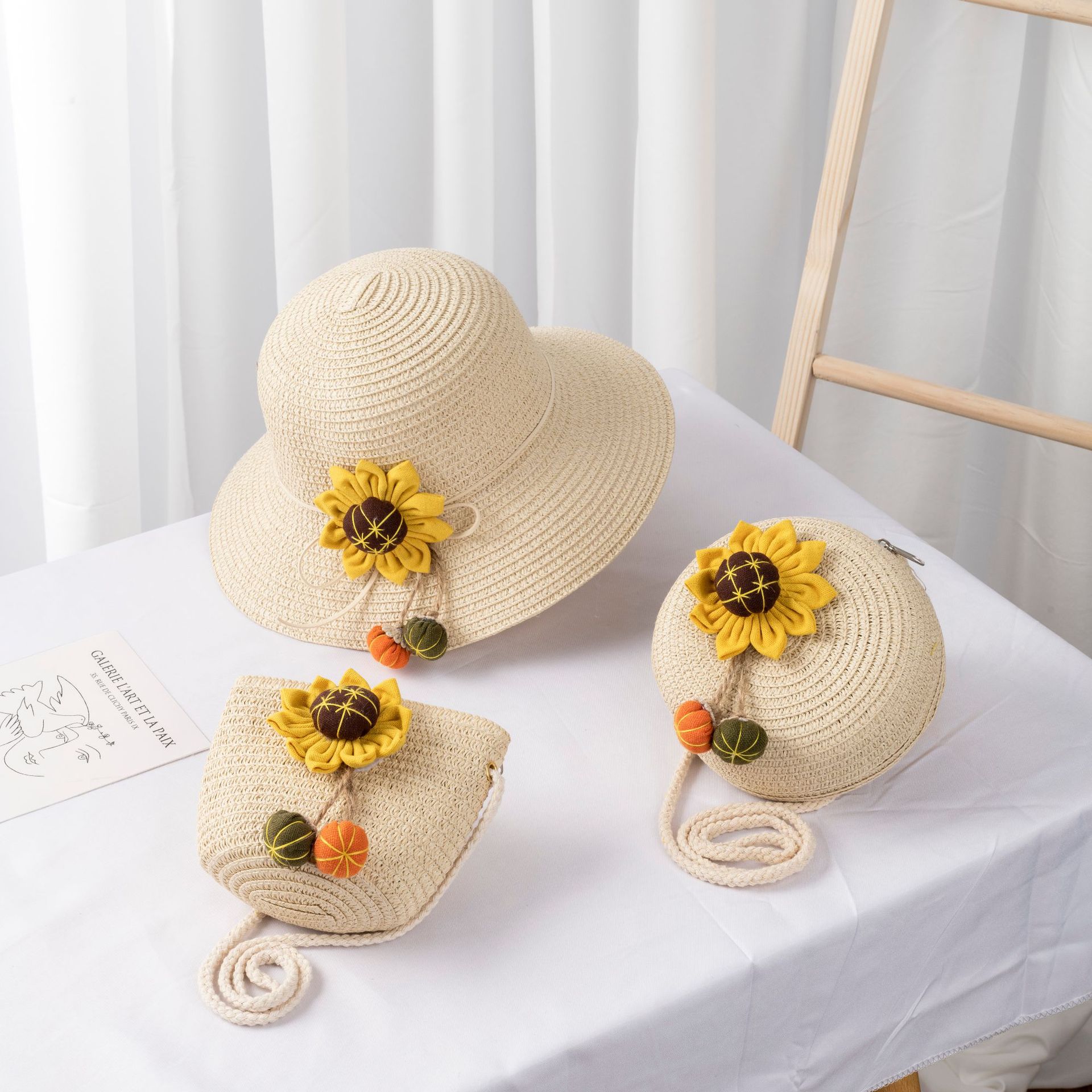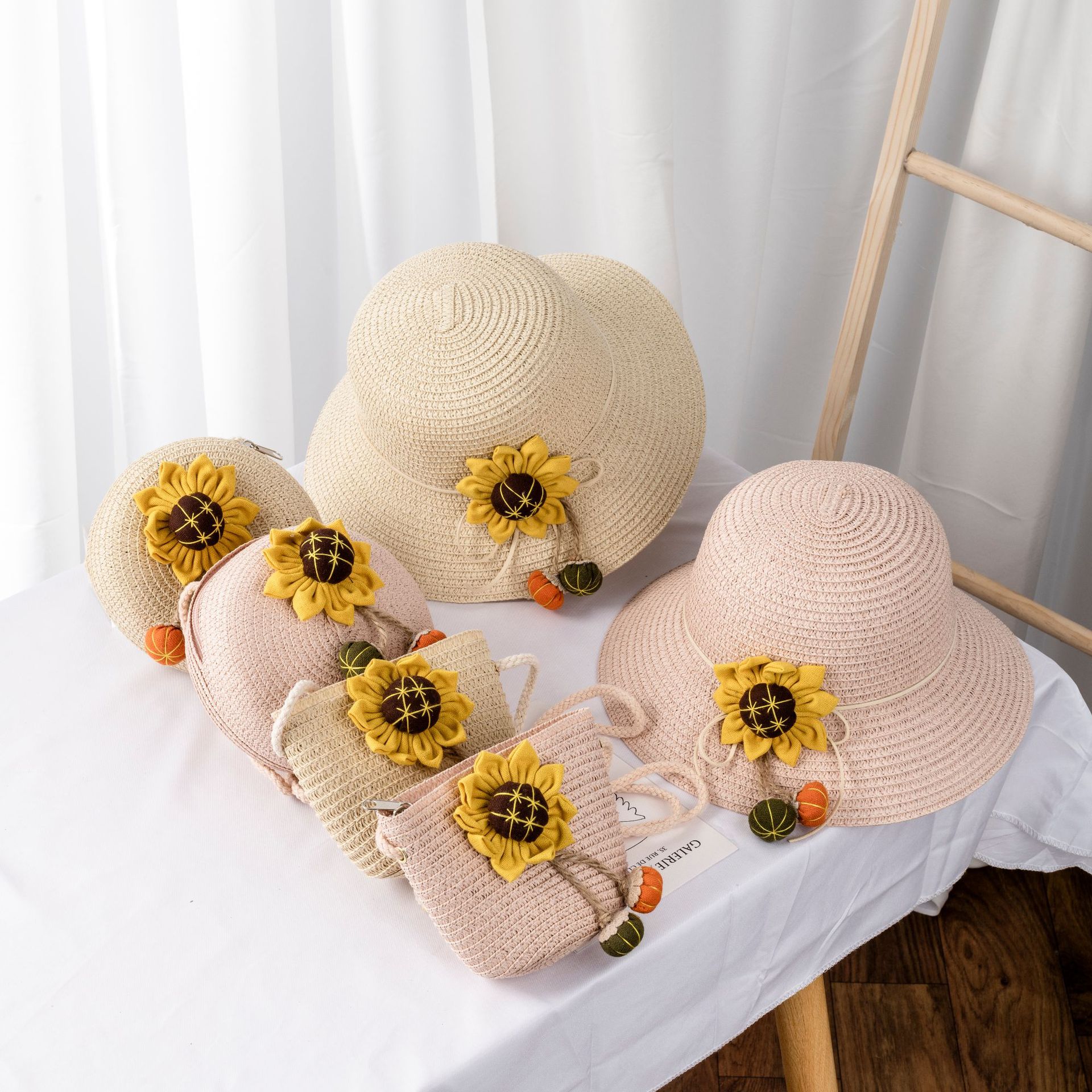 여름 어린이 밀짚 모자 여성의 야외 레저 여행 귀여운 플라워 비치 모자 빅 림 태양 모자 가방 트렌디스토어 가기
