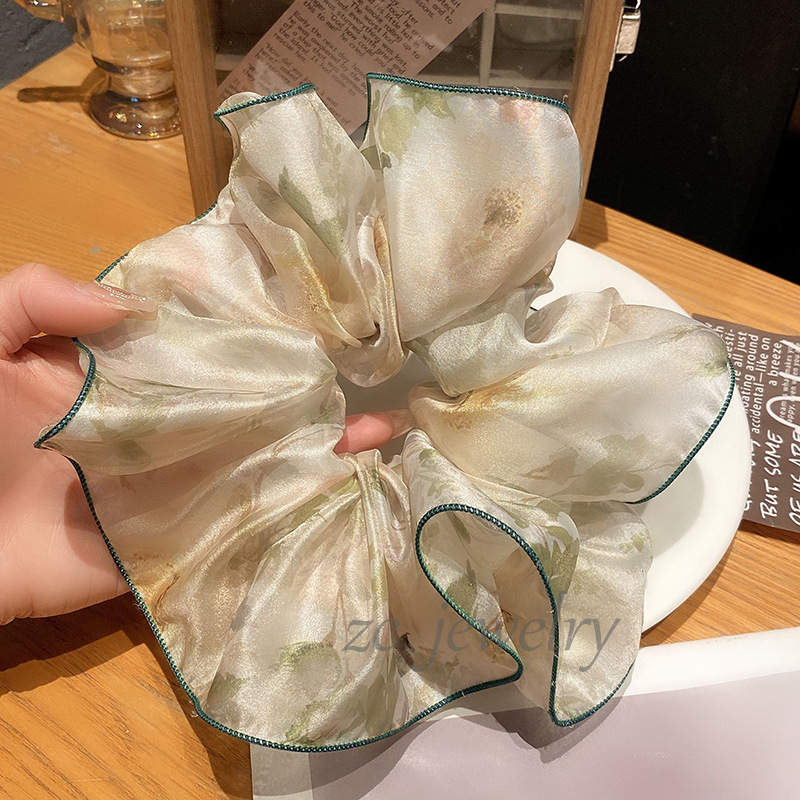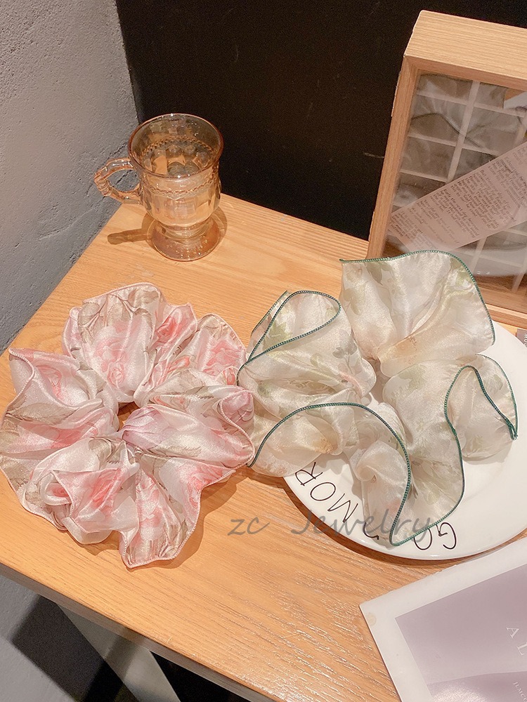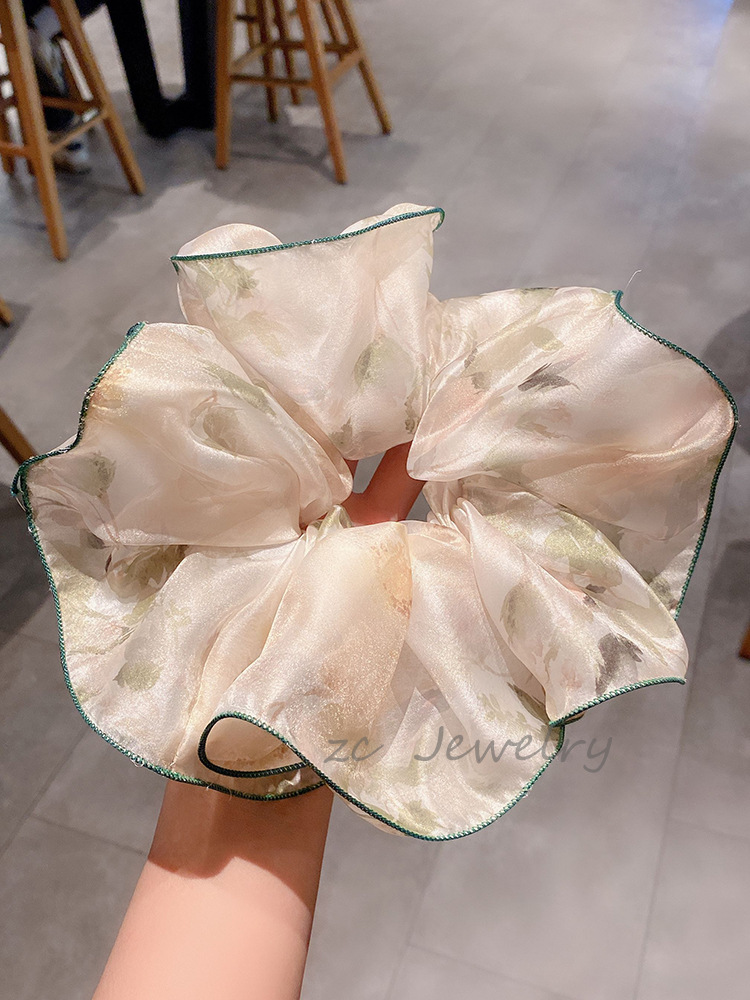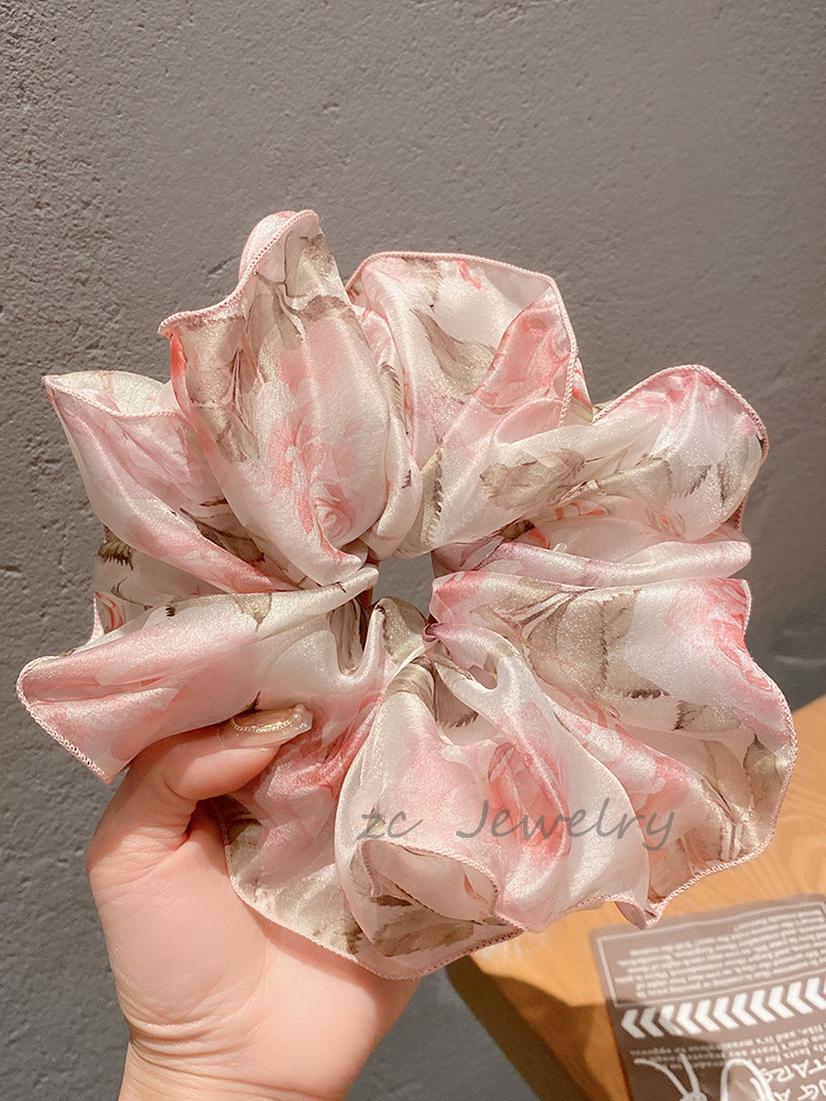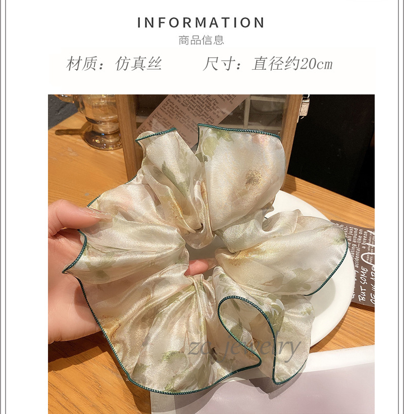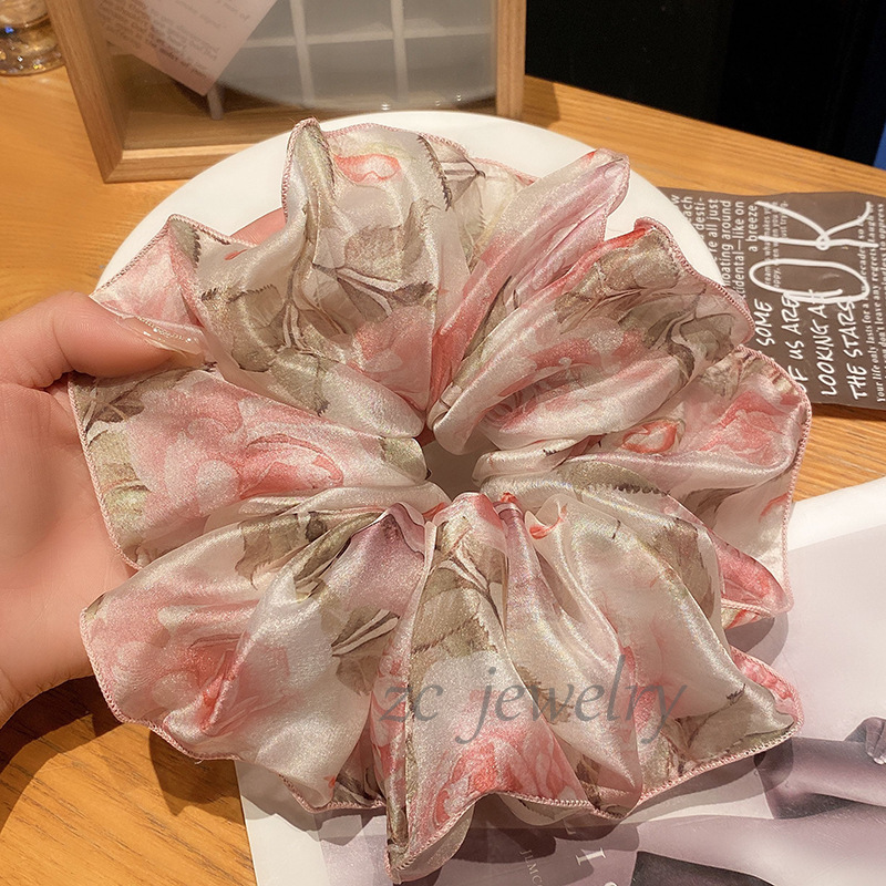 한국 아세트산 새틴 초대형 20cm 인쇄 장 링 높은 느낌 우아한 헤드 타이 로프 여성을위한 새로운 헤어 액세서리