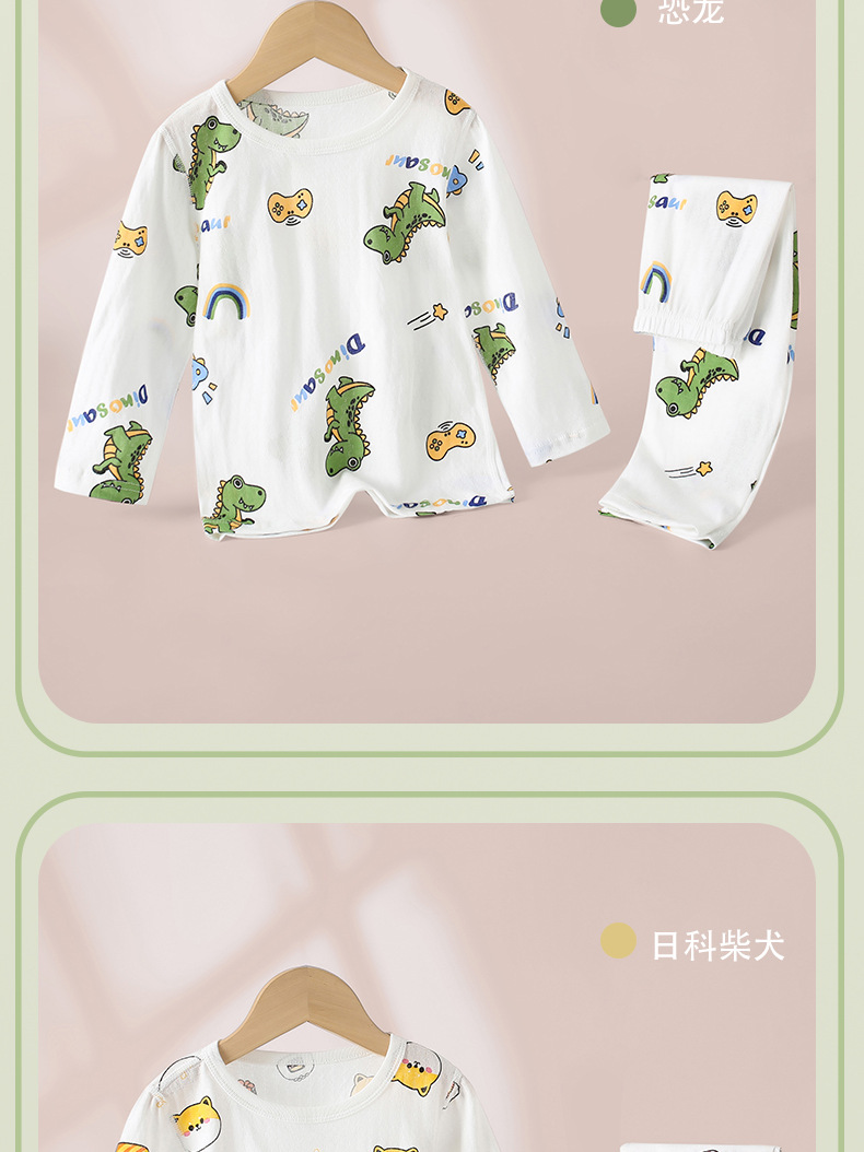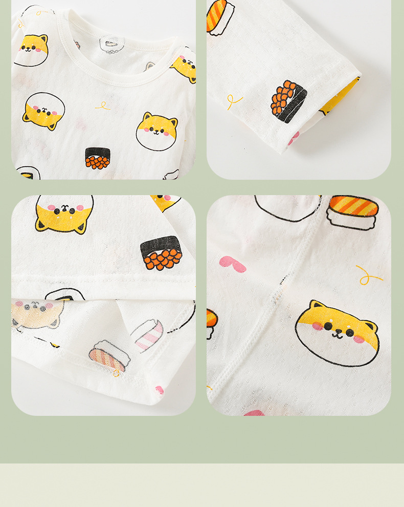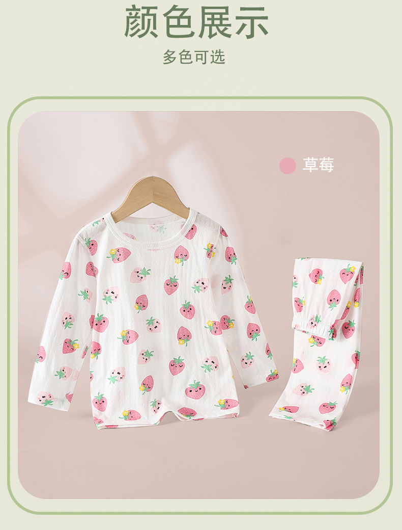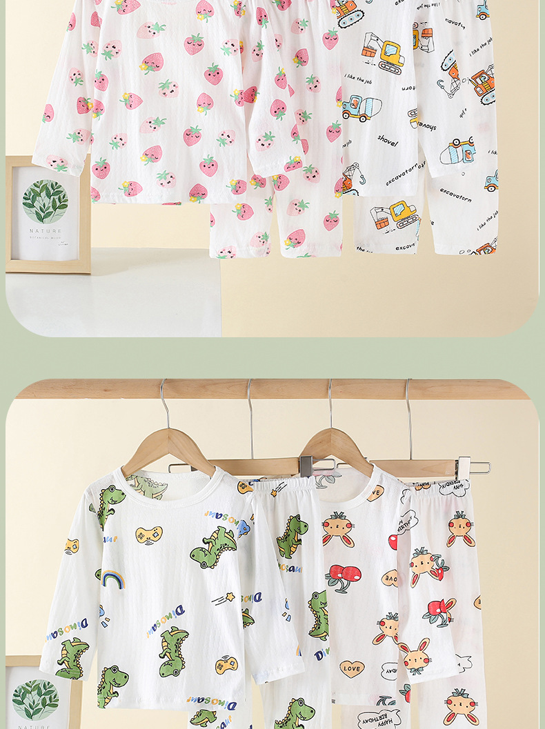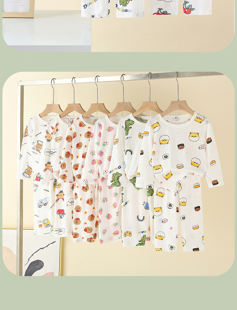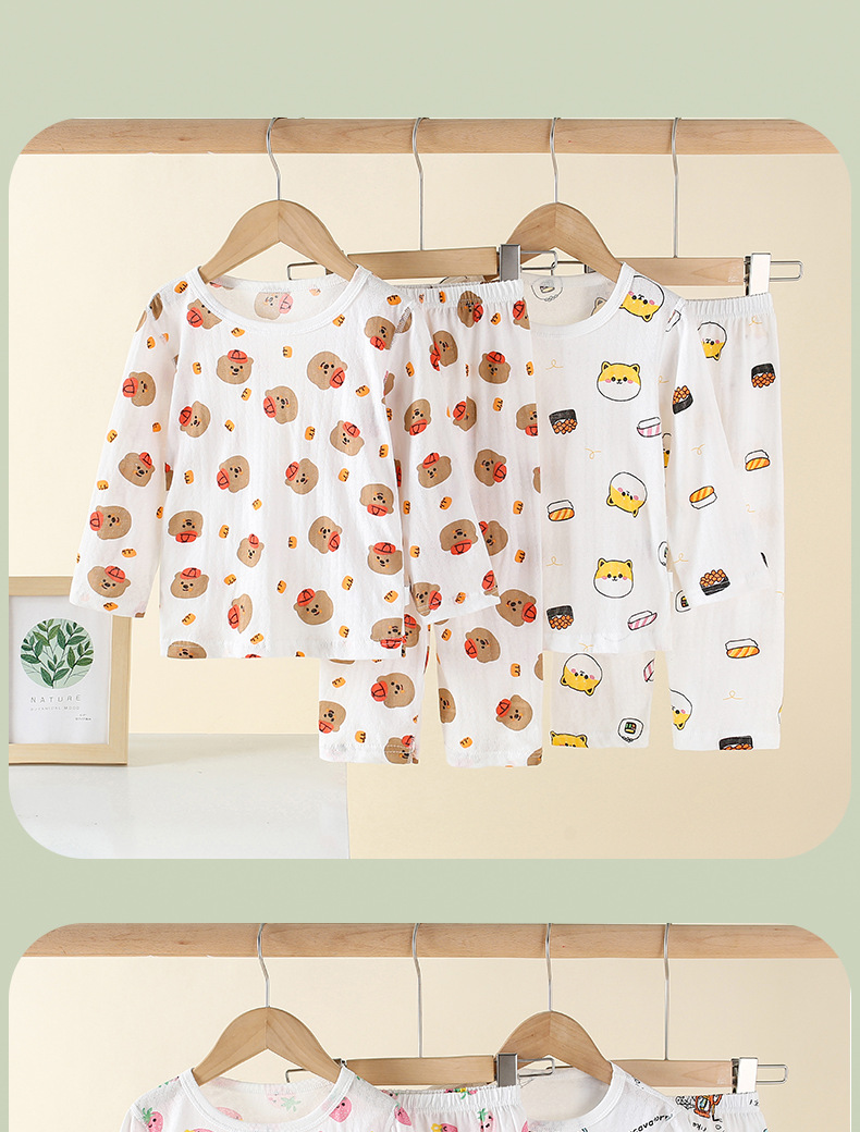 어린이 여름 순수 자카드 세트 아기의 봄과 가을 긴 소매 면 가정 옷 느슨한 에어컨 의류 소년과 소녀 잠옷 얇은스토어 가기