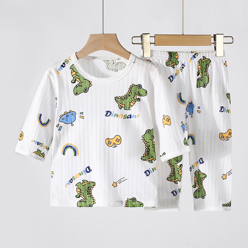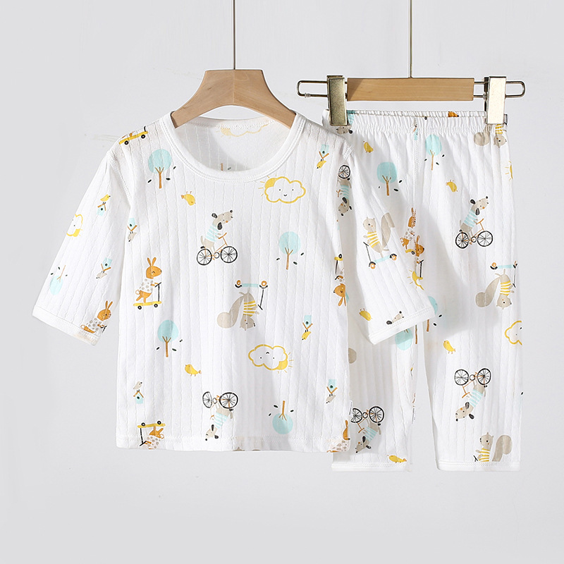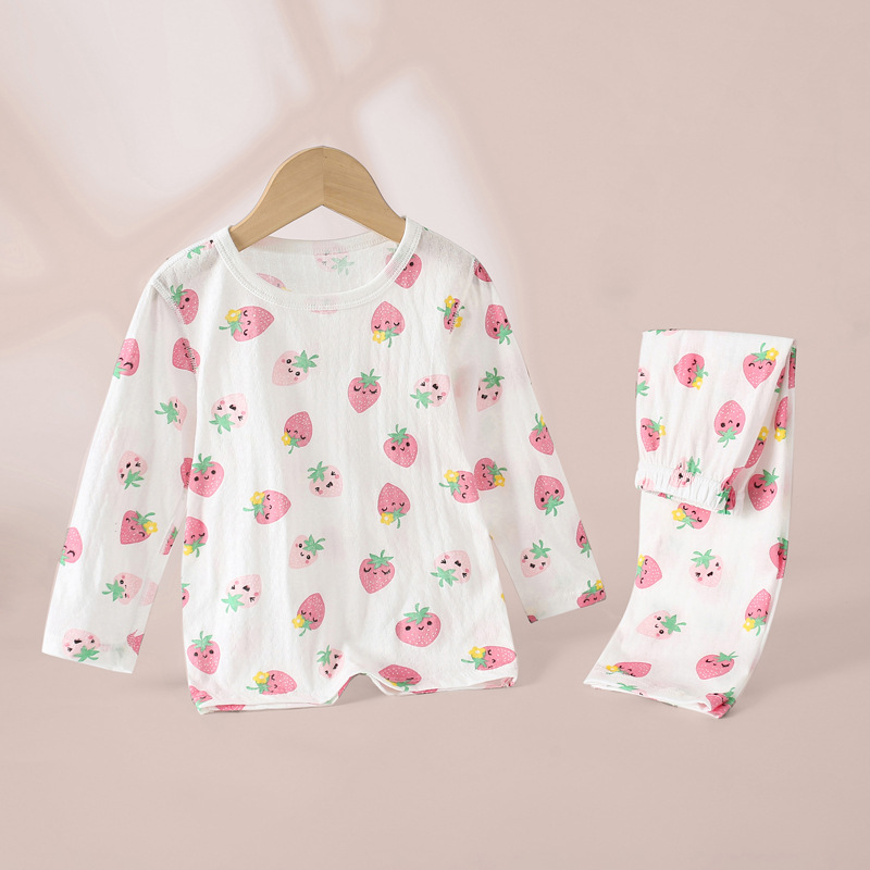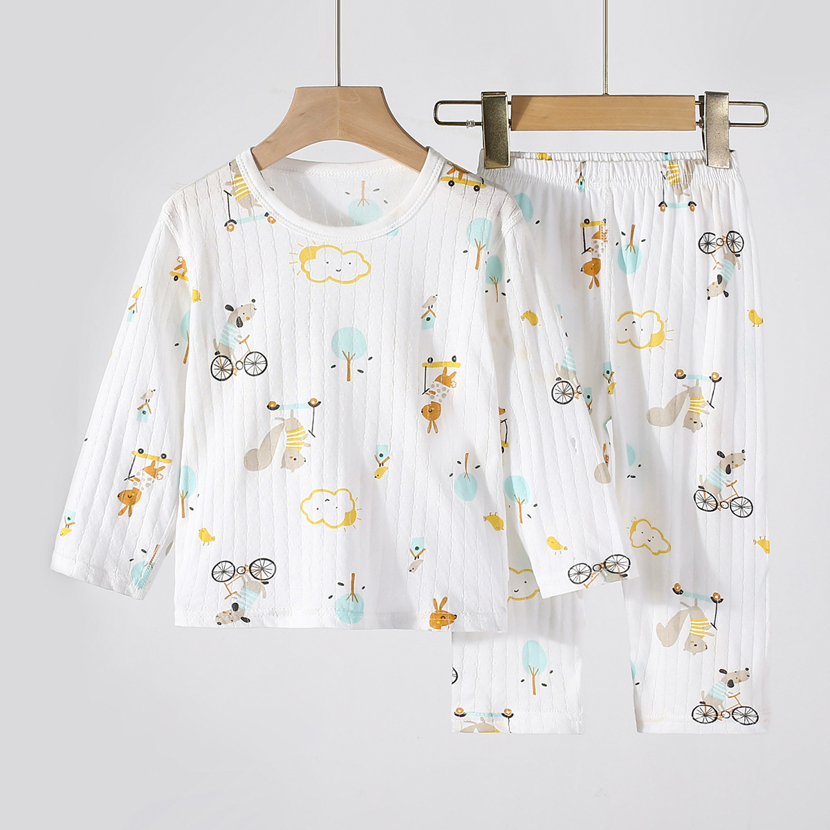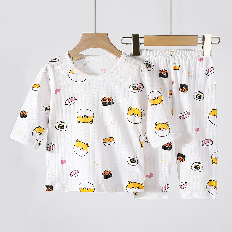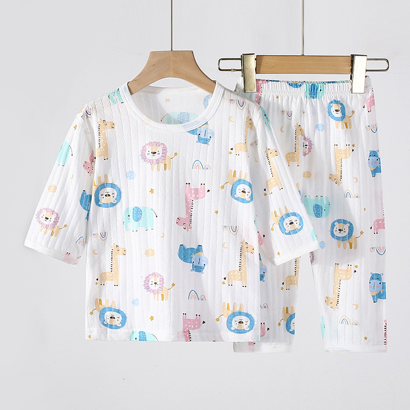 어린이 여름 순수 자카드 세트 아기의 봄과 가을 긴 소매 면 가정 옷 느슨한 에어컨 의류 소년과 소녀 잠옷 얇은스토어 가기
