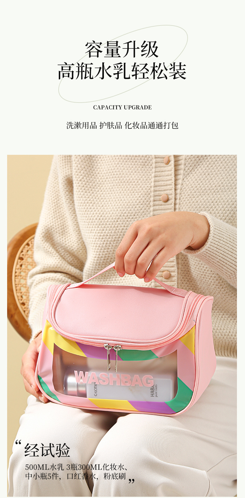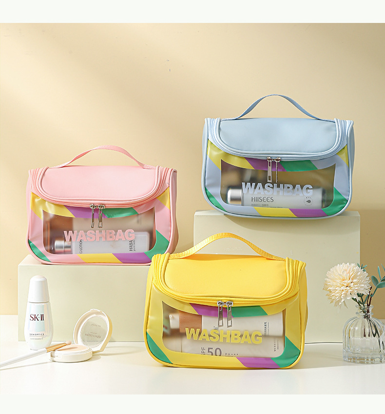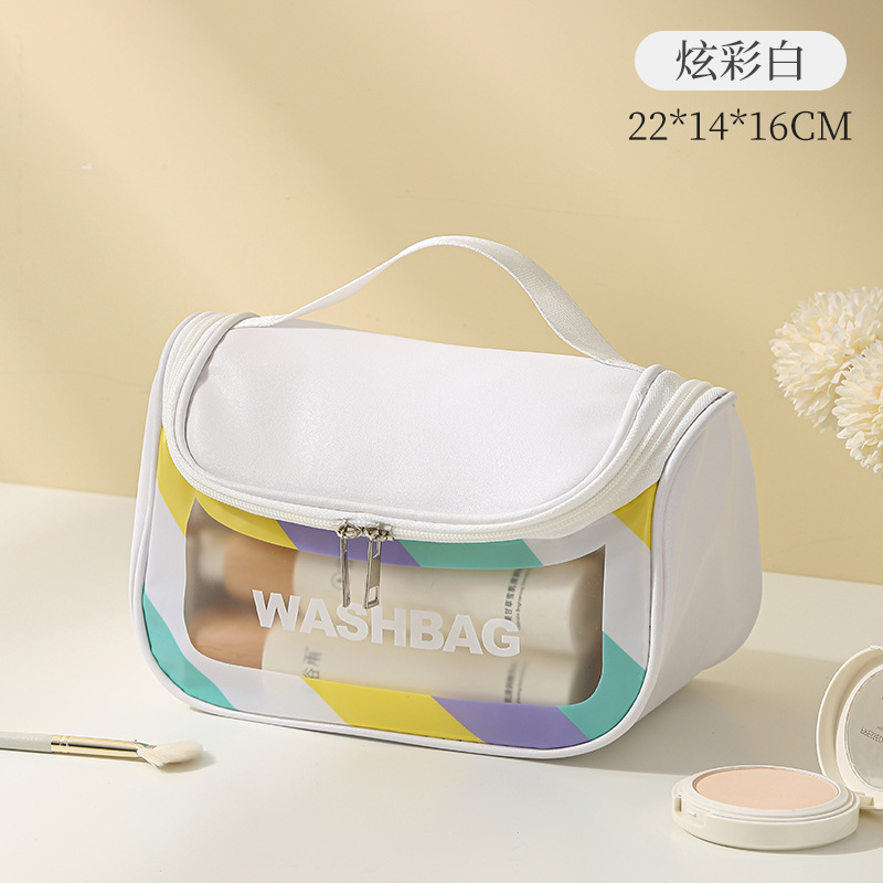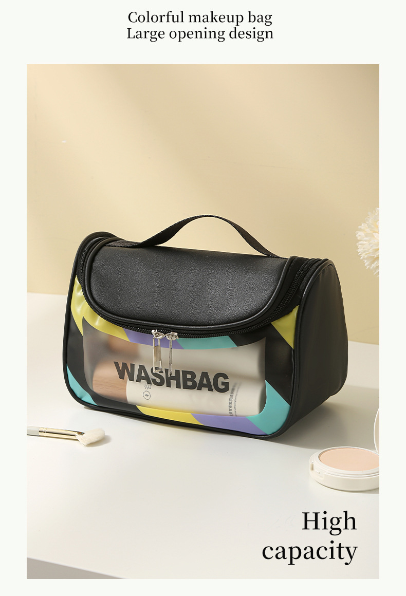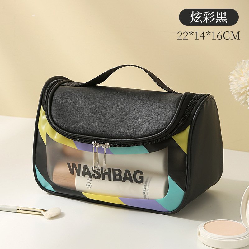 새로운 메이크업 보관 가방 다기능 여행 야외 메이크업 가방 PU 젖빛 보이는 다채로운 방수 세척 가방