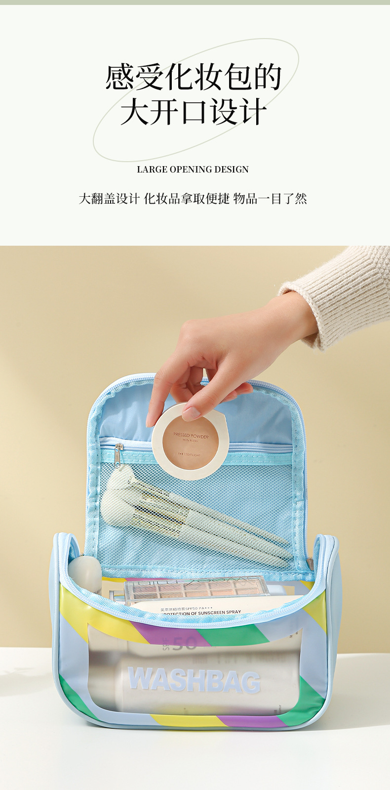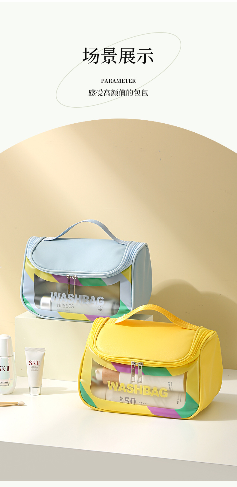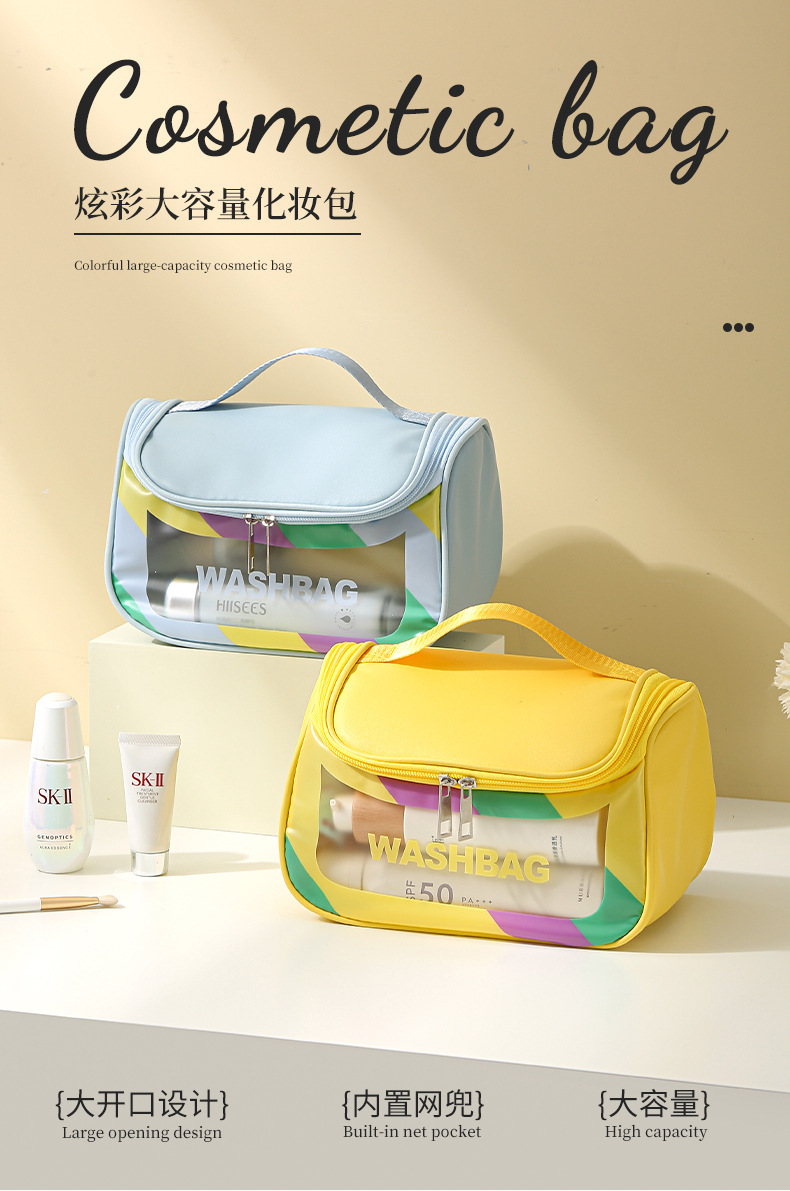 새로운 메이크업 보관 가방 다기능 여행 야외 메이크업 가방 PU 젖빛 보이는 다채로운 방수 세척 가방
