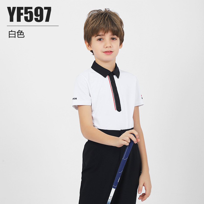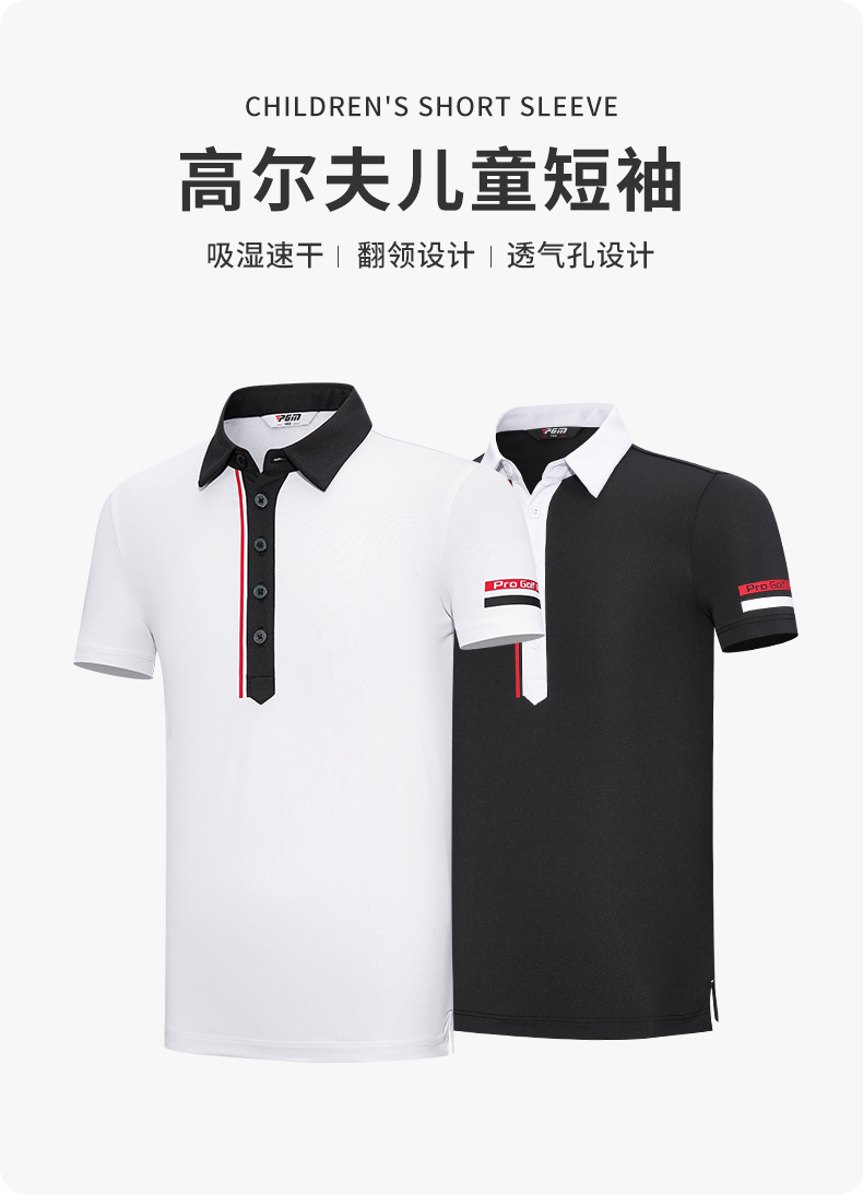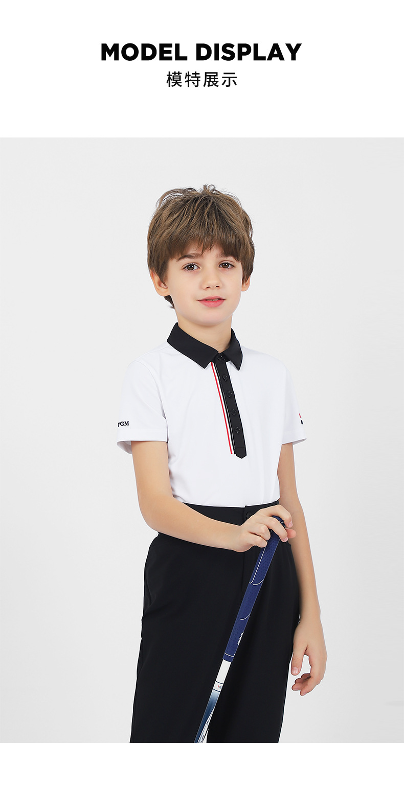 PGM 어린이 골프 의류 소년과 소녀 반팔 옷 통기성 구멍 옷깃 여름 스포츠 소년 탑스토어 가기