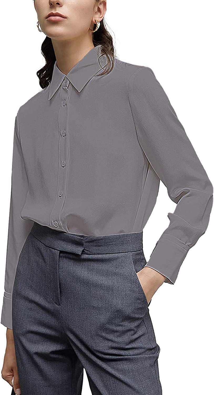 여자의 정사이즈 버튼 업 셔츠 긴 소매 클래식 칼라 최고 작업 사무실 캐주얼 쉬폰 셔츠스토어 가기