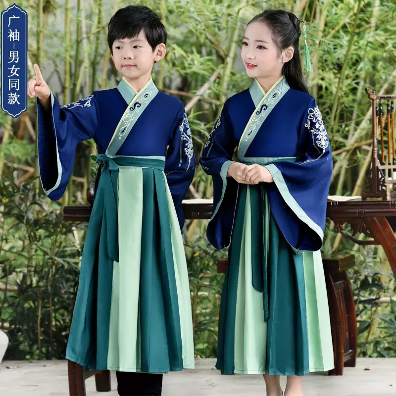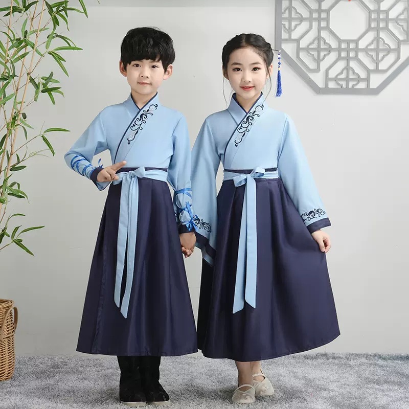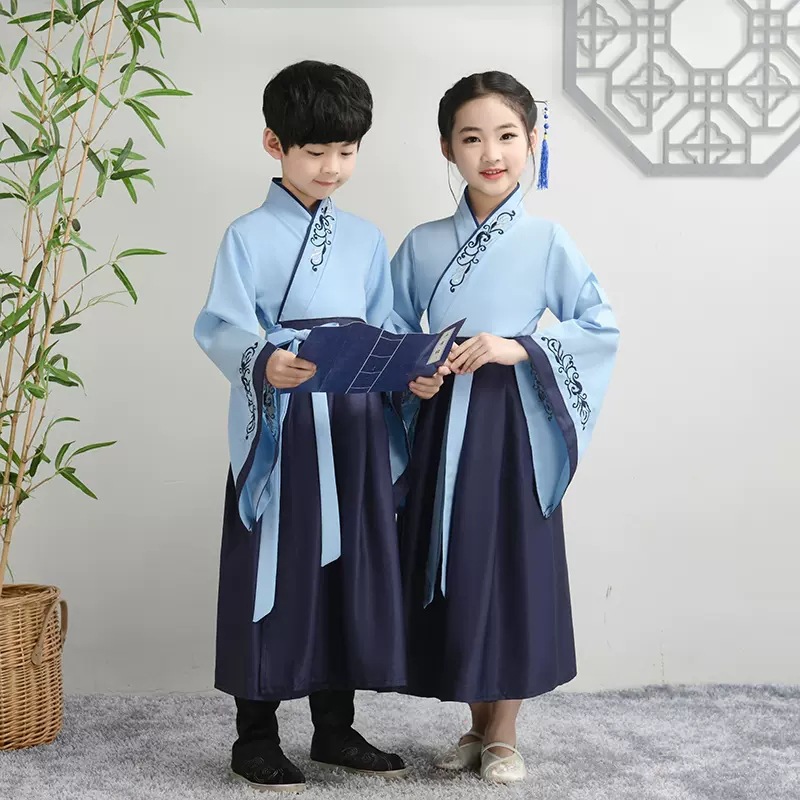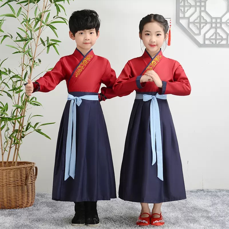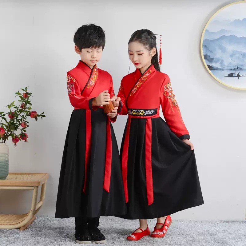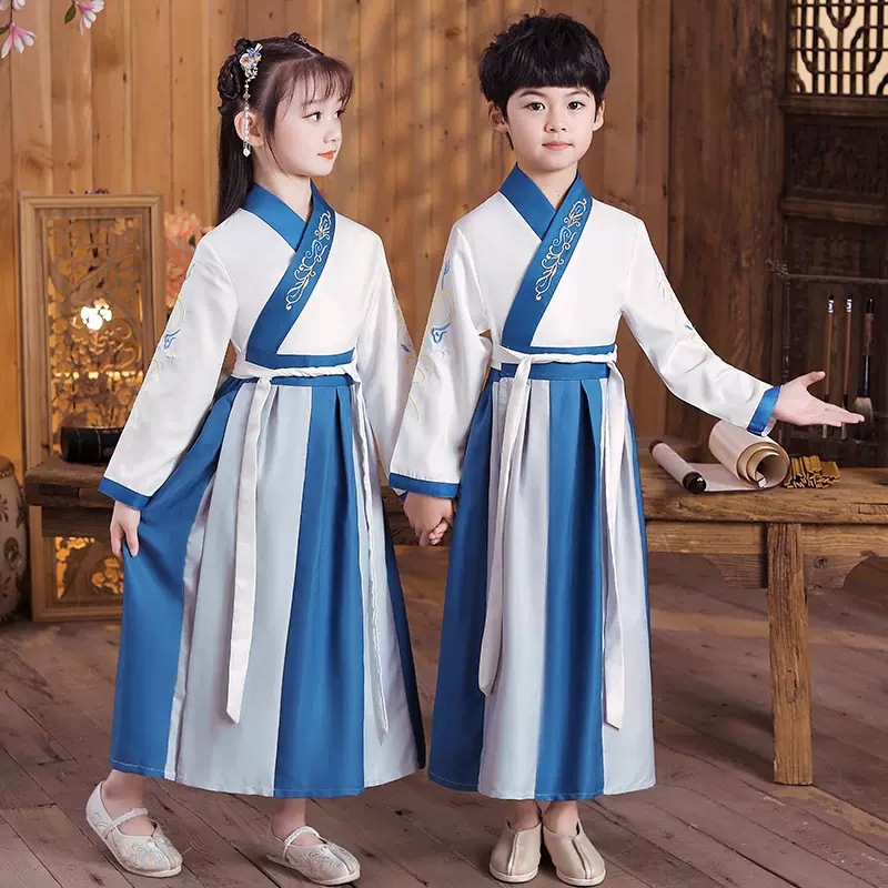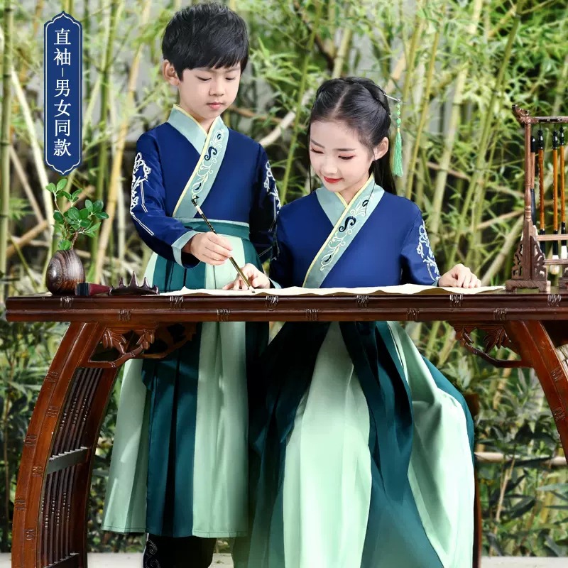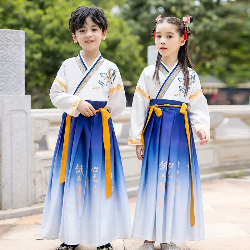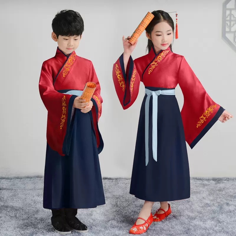 Hanfu 소년 Guoxue 의류 중국 스타일 고대 의상 책 아동 의류 여아 초등학생 3 자 수트라 어린이 공연 의류