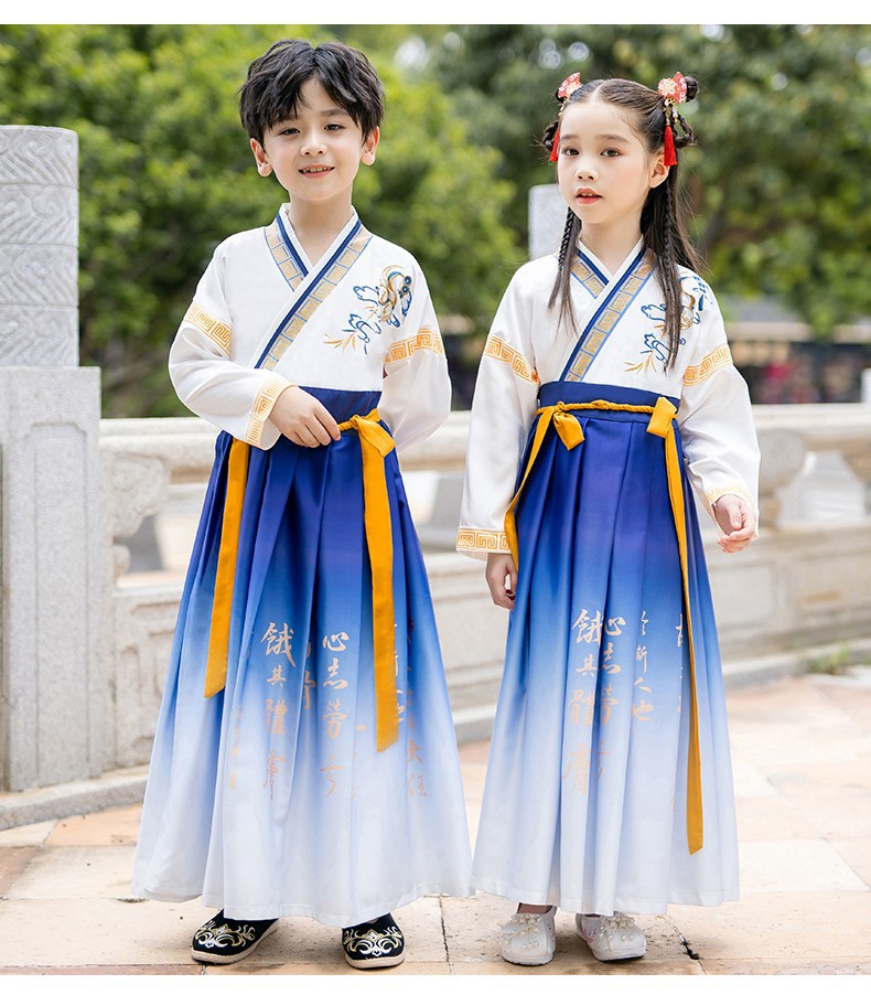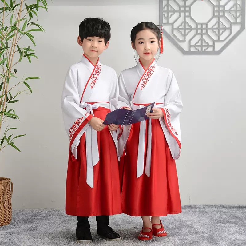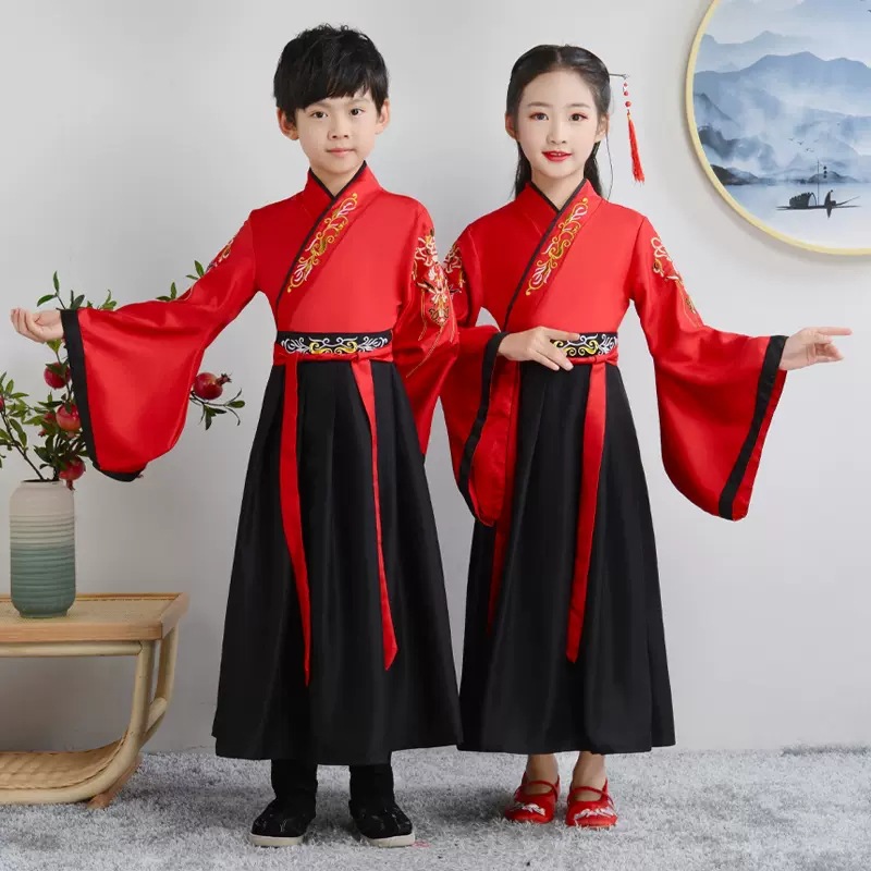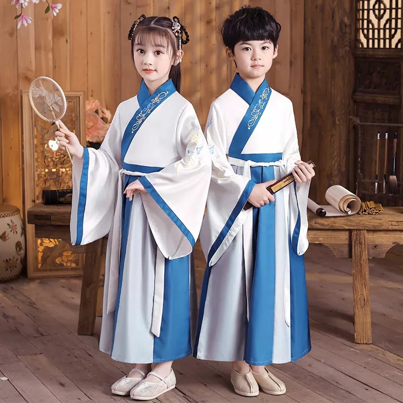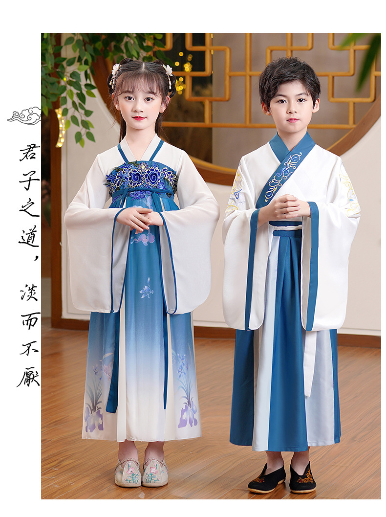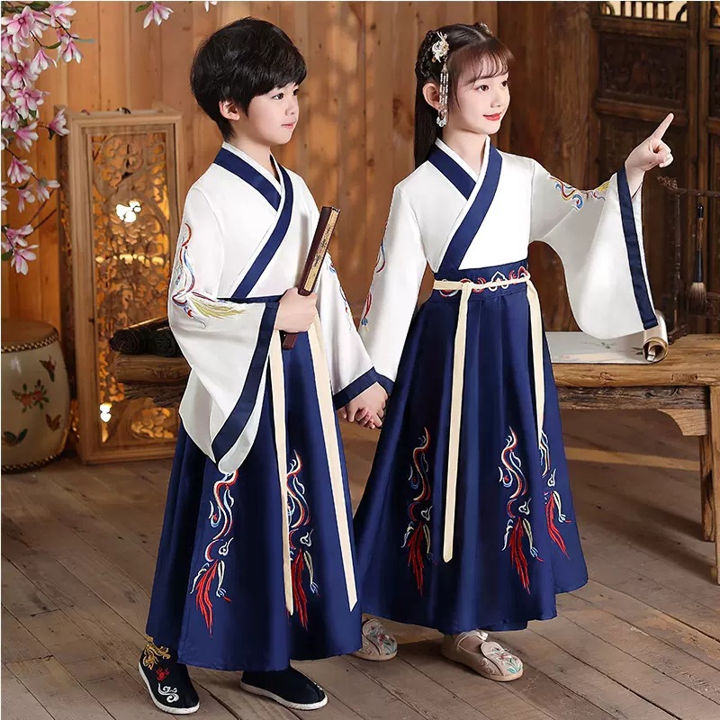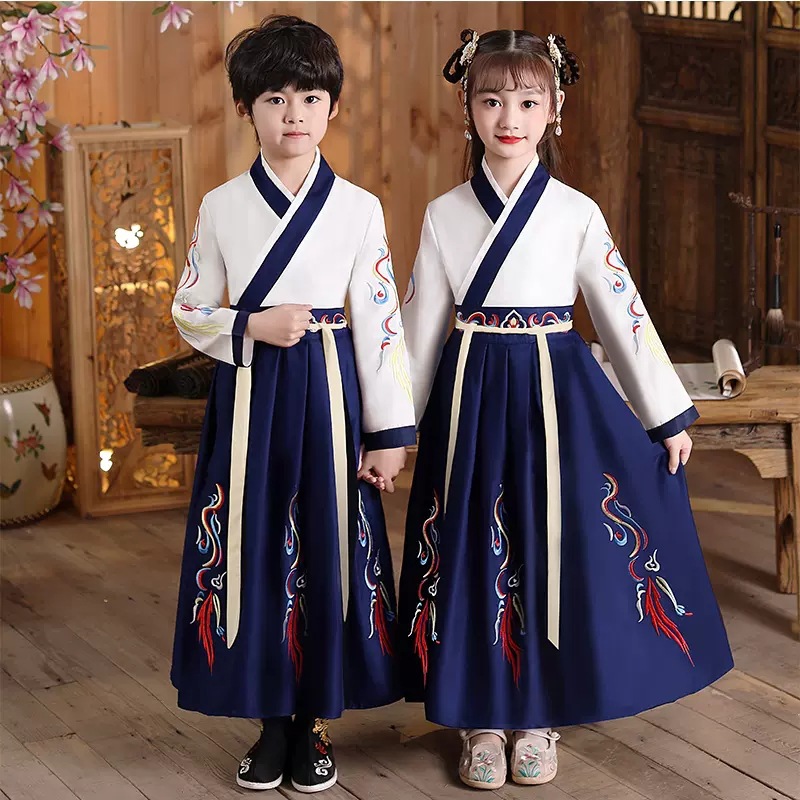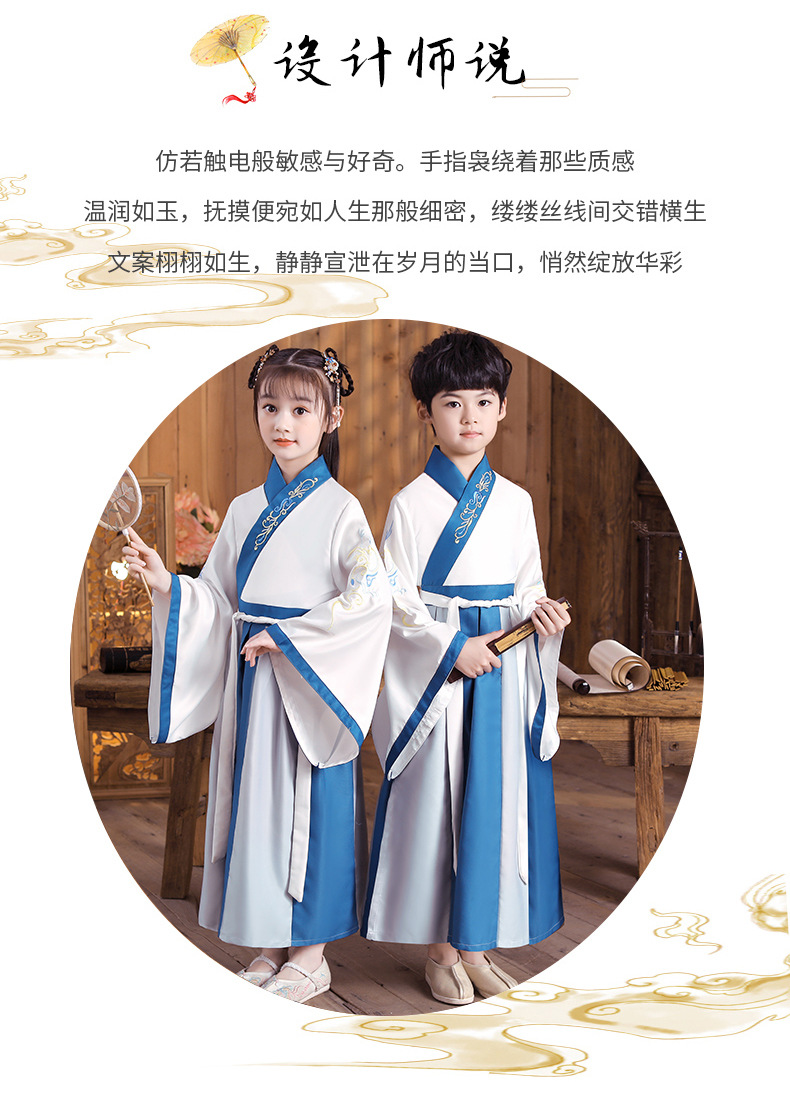 Hanfu 소년 Guoxue 의류 중국 스타일 고대 의상 책 아동 의류 여아 초등학생 3 자 수트라 어린이 공연 의류