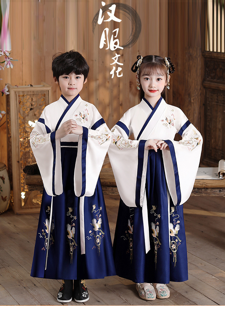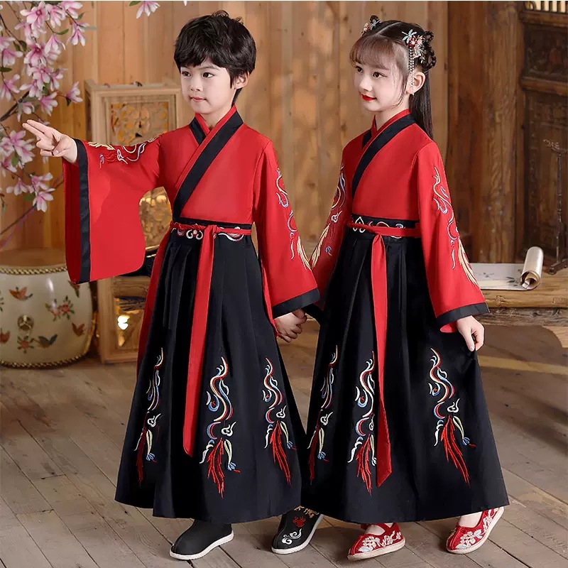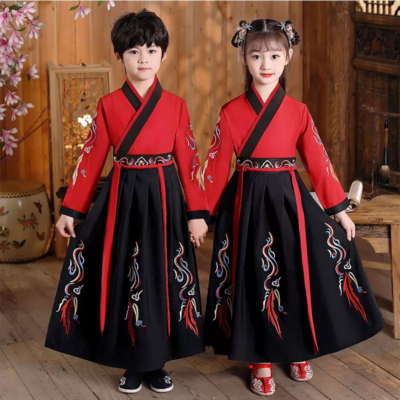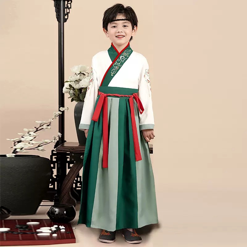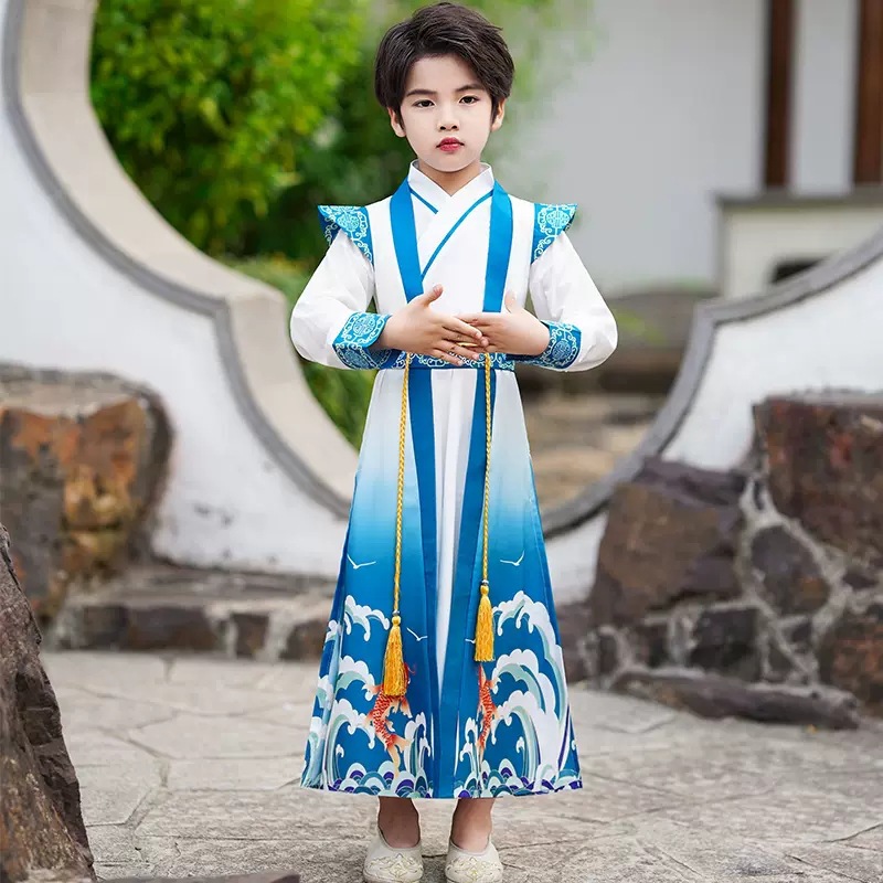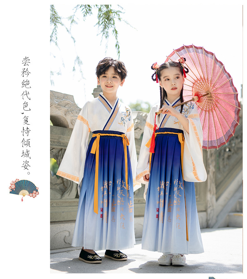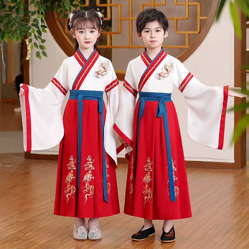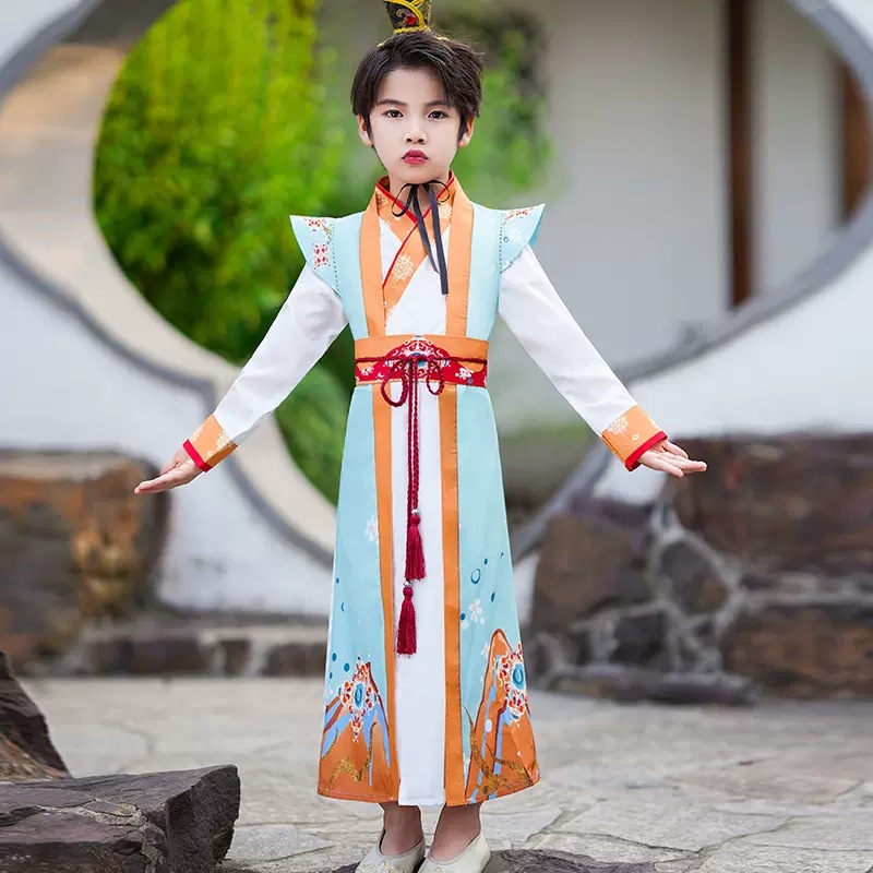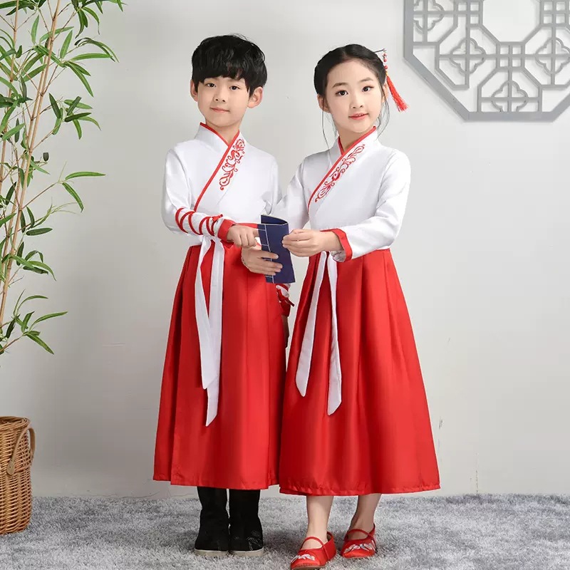 Hanfu 소년 Guoxue 의류 중국 스타일 고대 의상 책 아동 의류 여아 초등학생 3 자 수트라 어린이 공연 의류