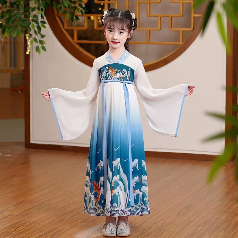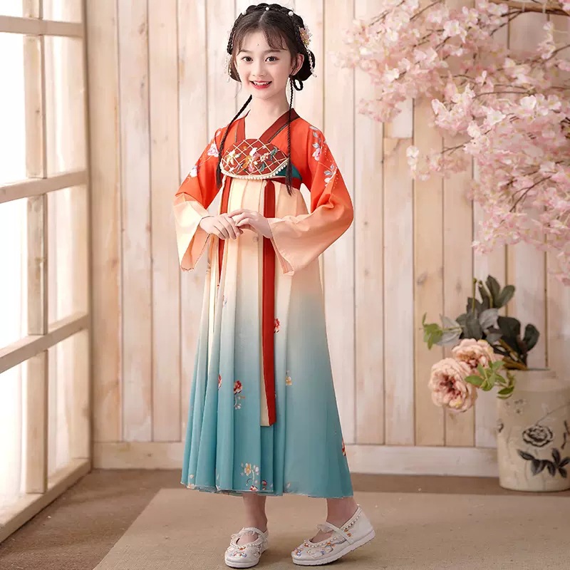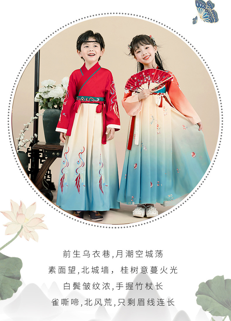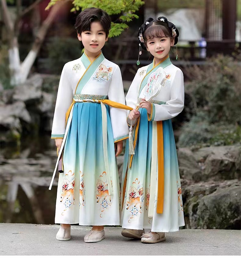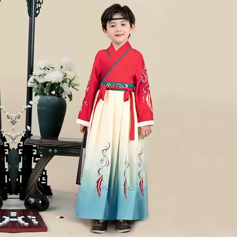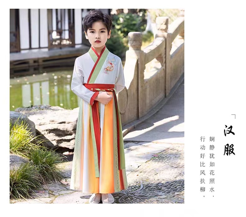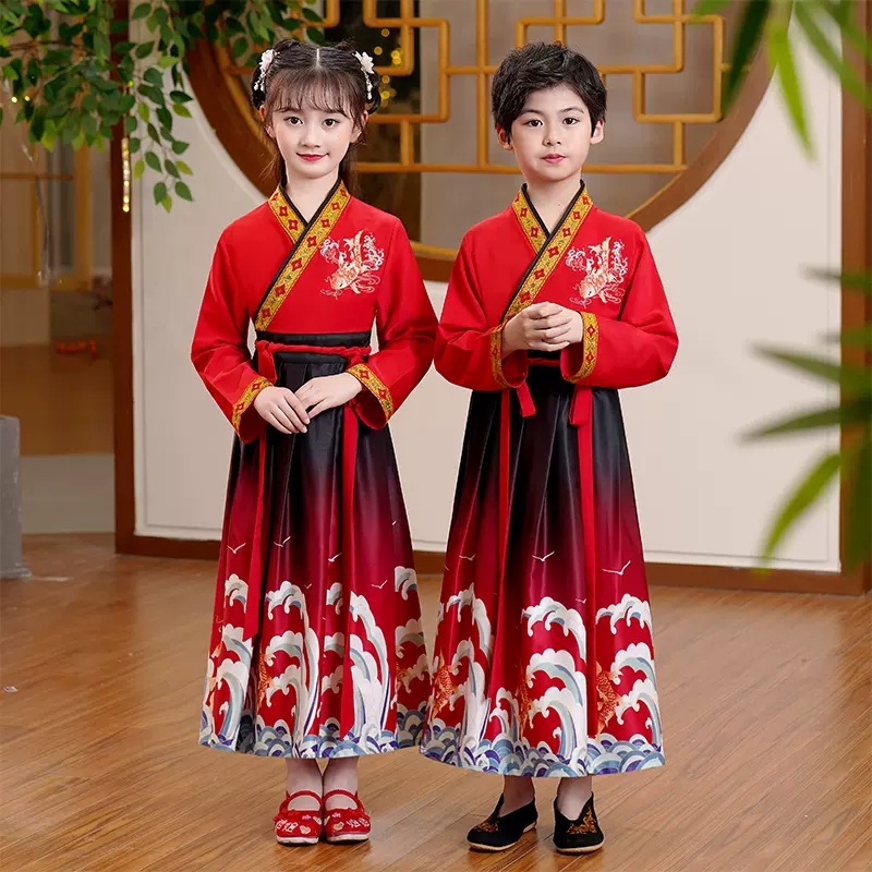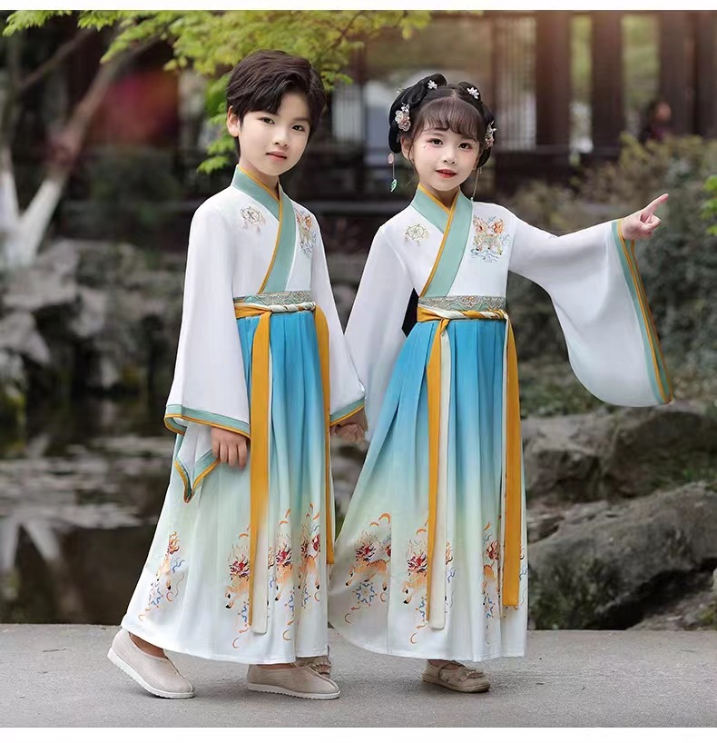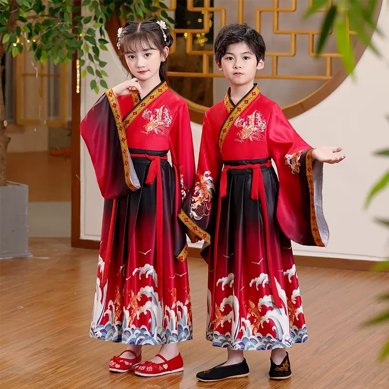Hanfu 소년 Guoxue 의류 중국 스타일 고대 의상 책 아동 의류 여아 초등학생 3 자 수트라 어린이 공연 의류