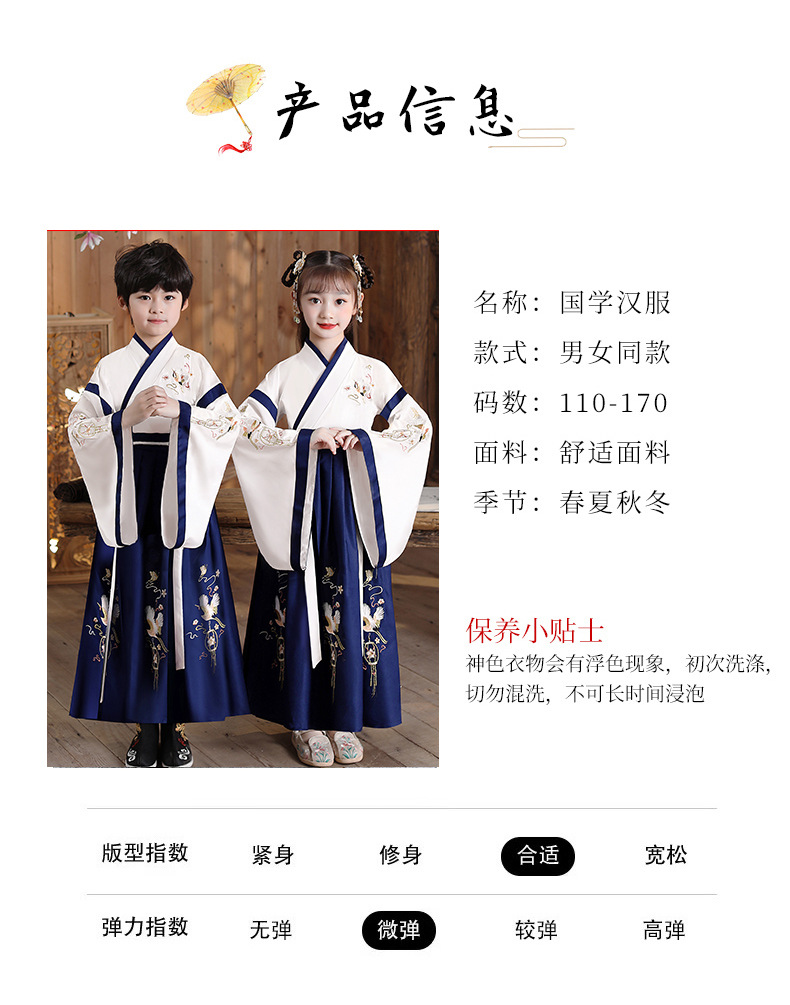 Hanfu 소년 Guoxue 의류 중국 스타일 고대 의상 책 아동 의류 여아 초등학생 3 자 수트라 어린이 공연 의류스토어 가기