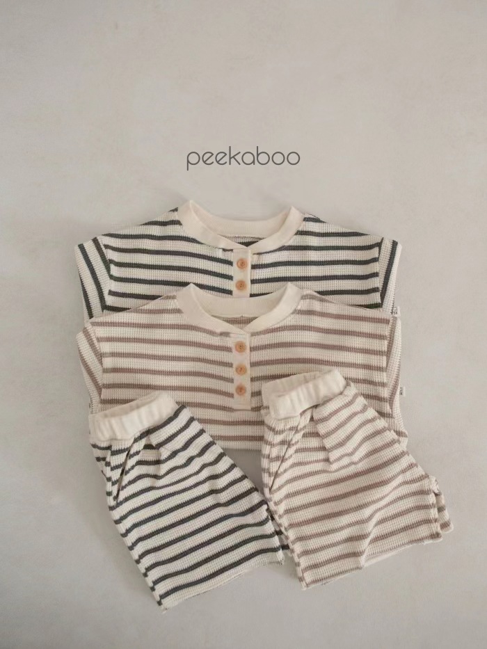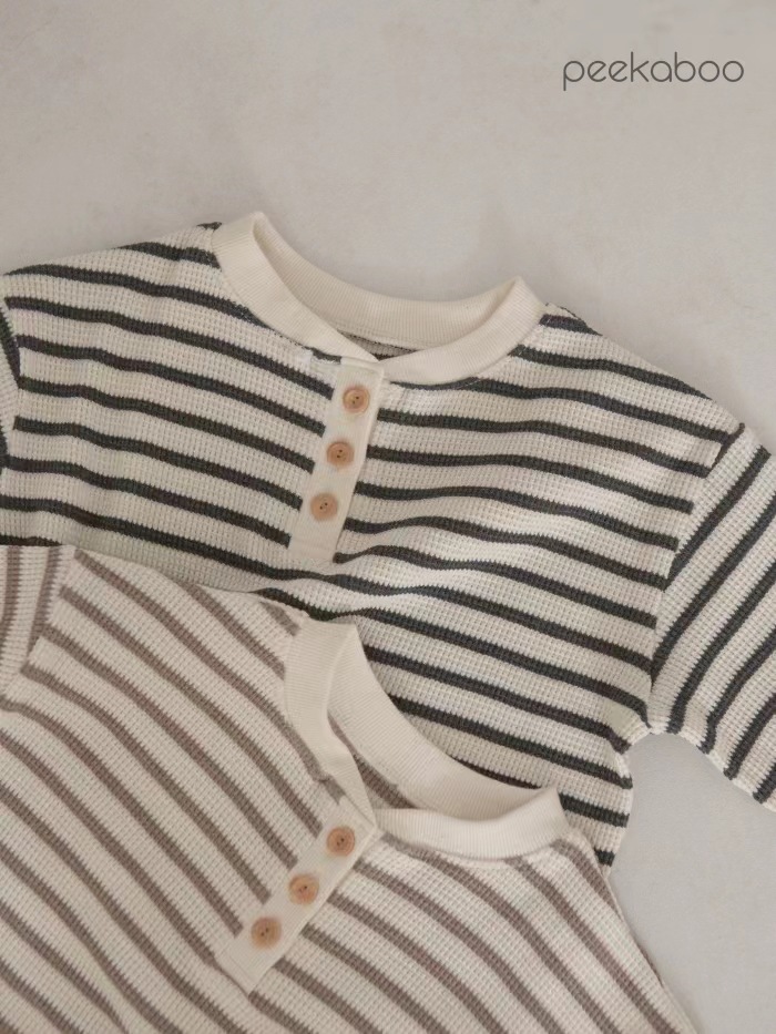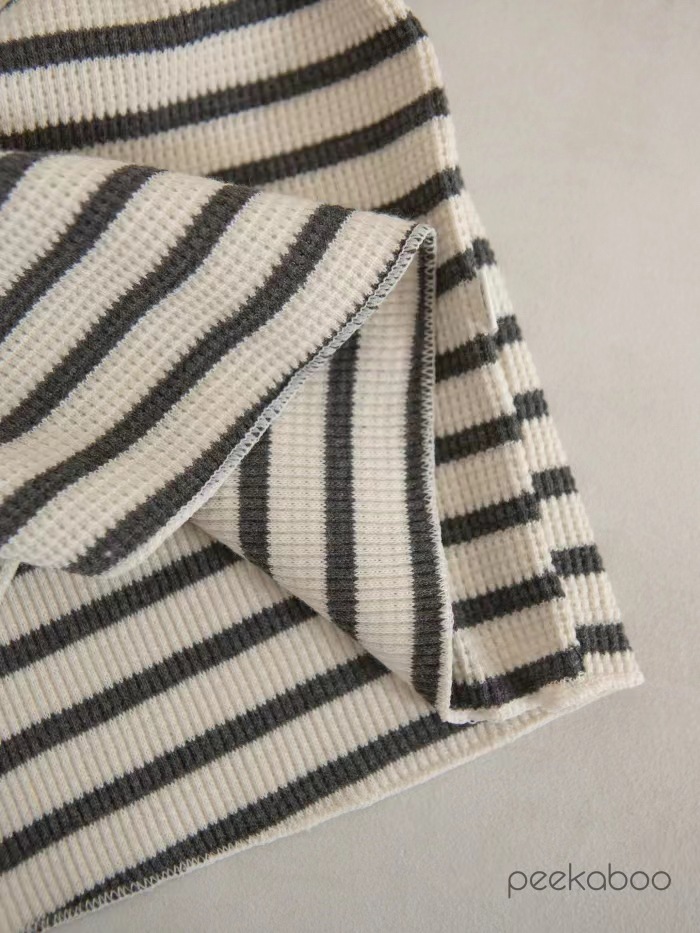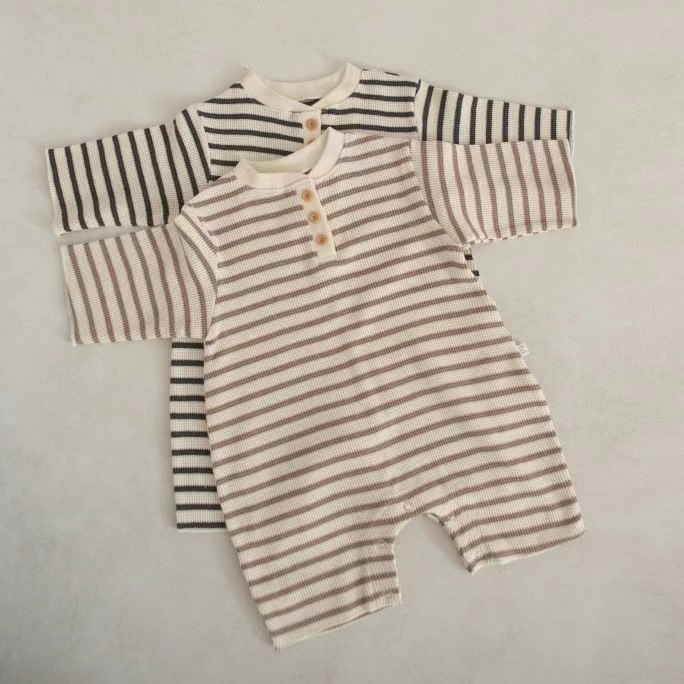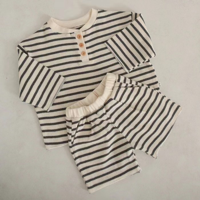 한국 스타일 여름 줄무늬 아기 세트 간단한 만화 아기의 반팔 귀여운 캐주얼 긴팔 투피스 세트스토어 가기