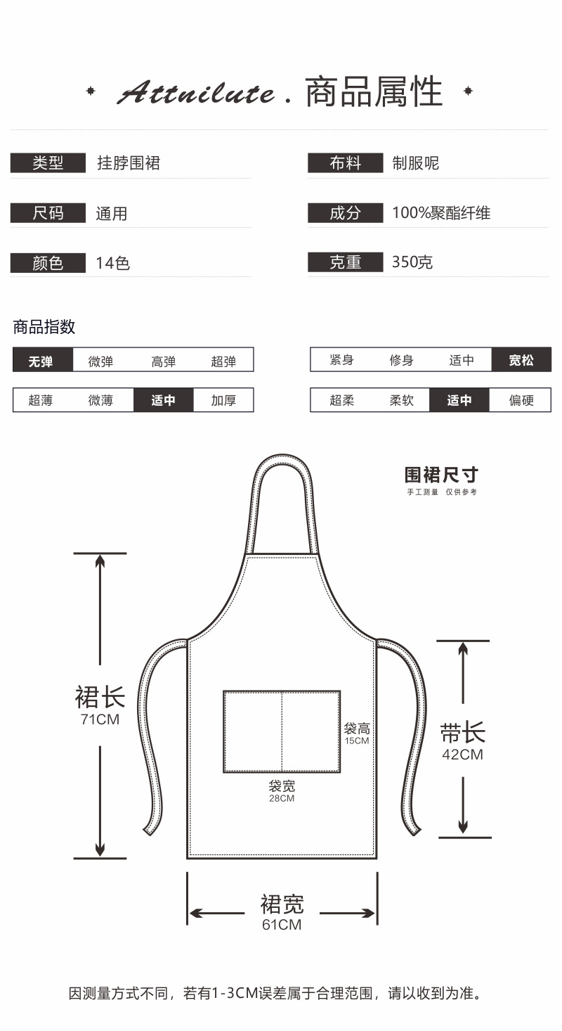 광고 앞치마 맞춤형 인쇄 로고 초저가 선물 앞치마 맞춤형 슈퍼마켓 체인 작업복 앞치마