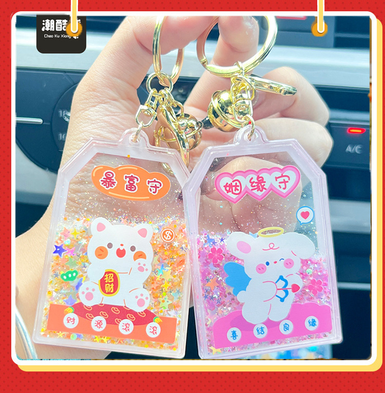 조수 쿨 베어 아름다운 축복 로얄 가드 펜던트 quicksand 병 도매 아크릴 키 체인 학생 작은 선물 만화스토어 가기