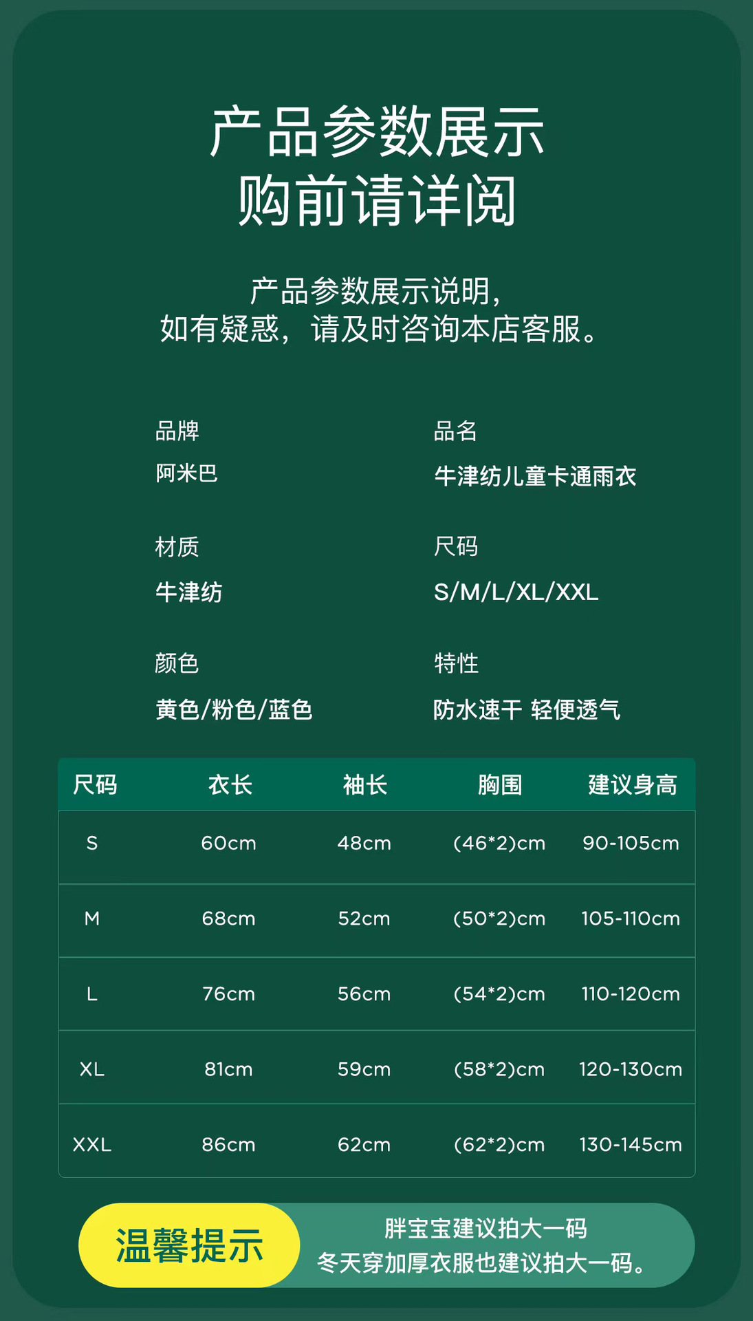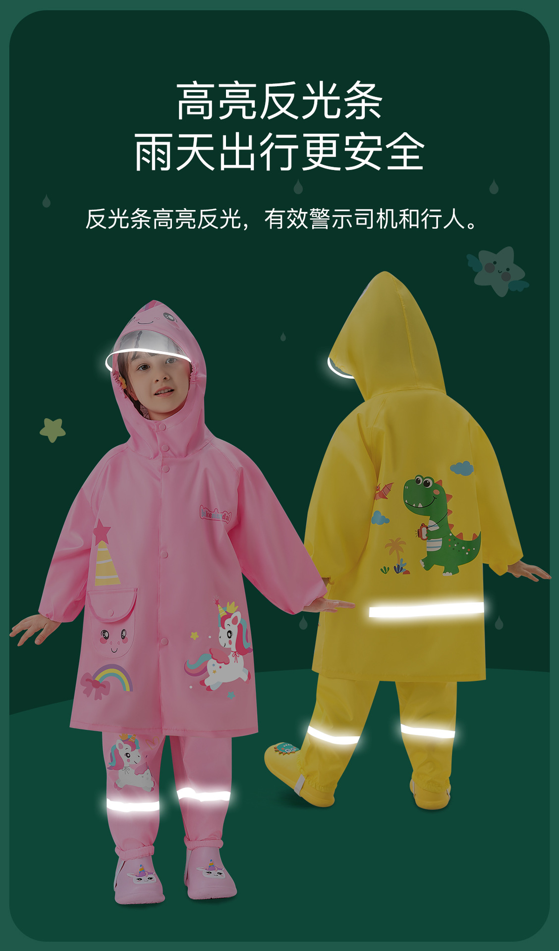 어린이 우비 책가방 세트 유치원 초등학생 분리형 세트 옥스포드 천 작은 공룡 우비 반사 디자인
