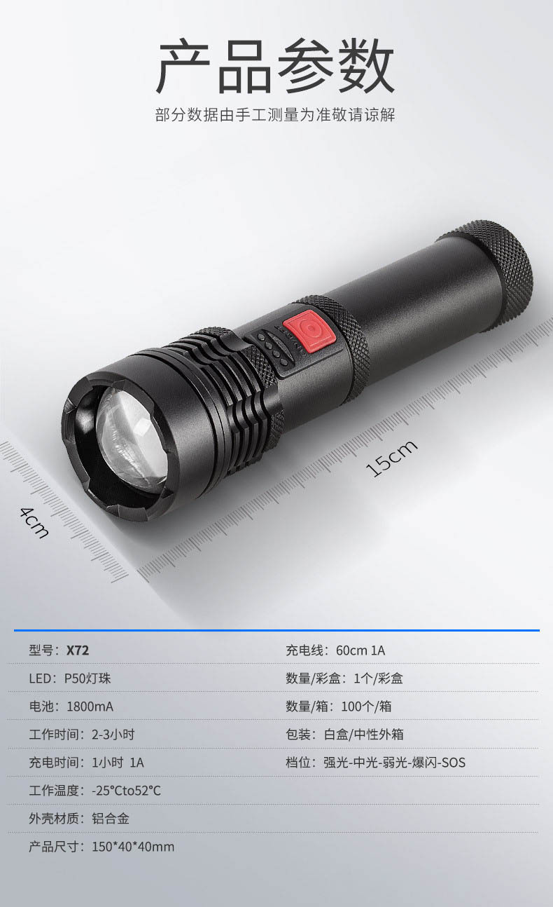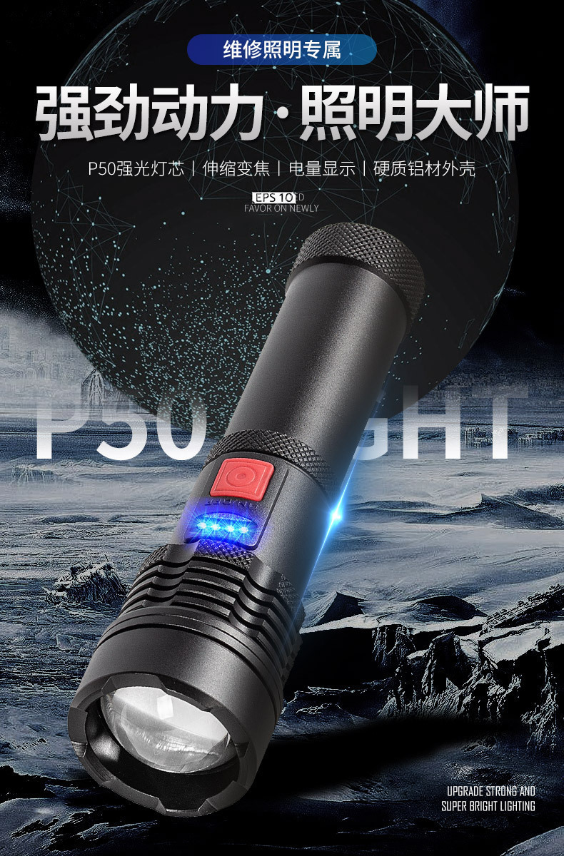 알루미늄 합금 손전등 ledP50 야외 충전식 작업등 다기능 백색 레이저 라이트 도매 야외 비상용