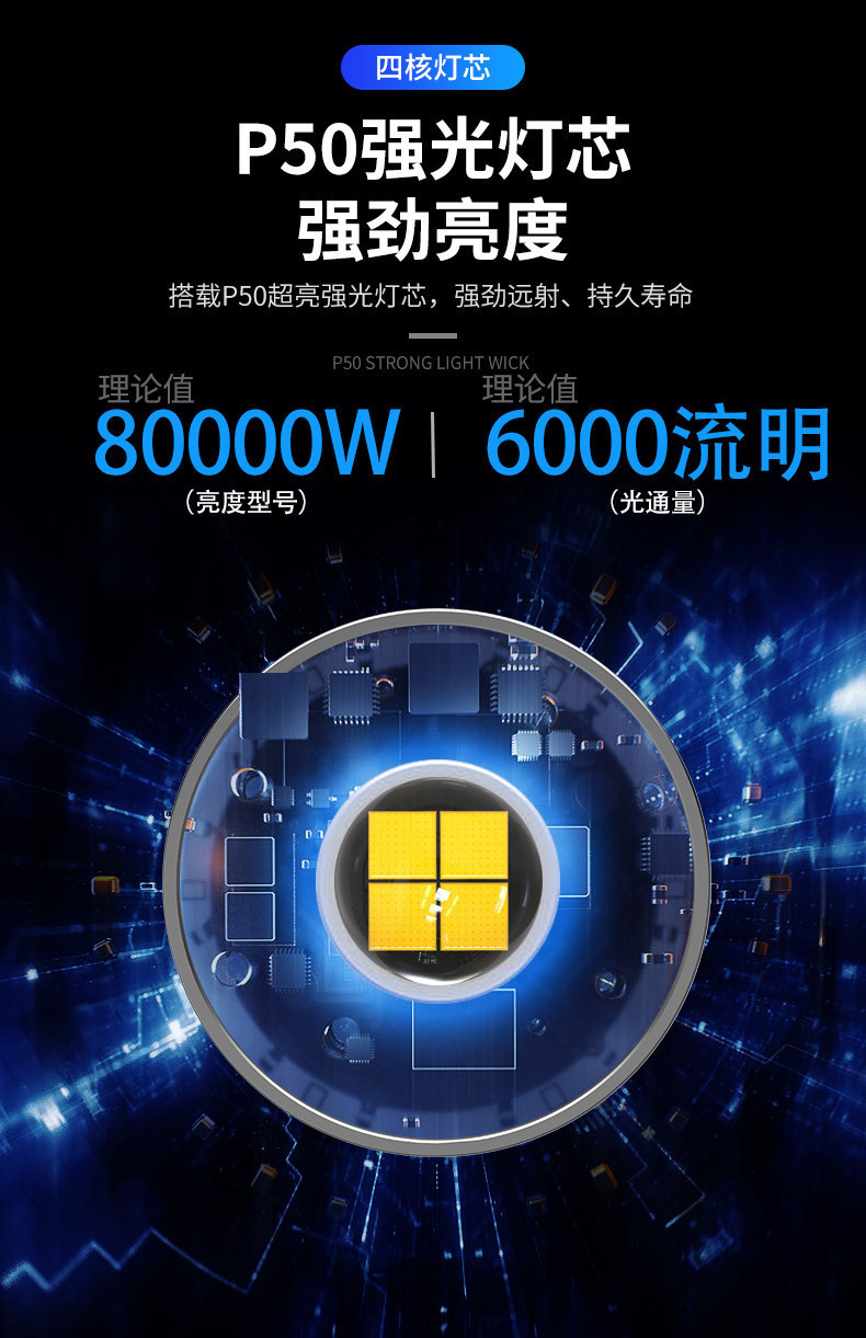 알루미늄 합금 손전등 ledP50 야외 충전식 작업등 다기능 백색 레이저 라이트 도매 야외 비상용스토어 가기