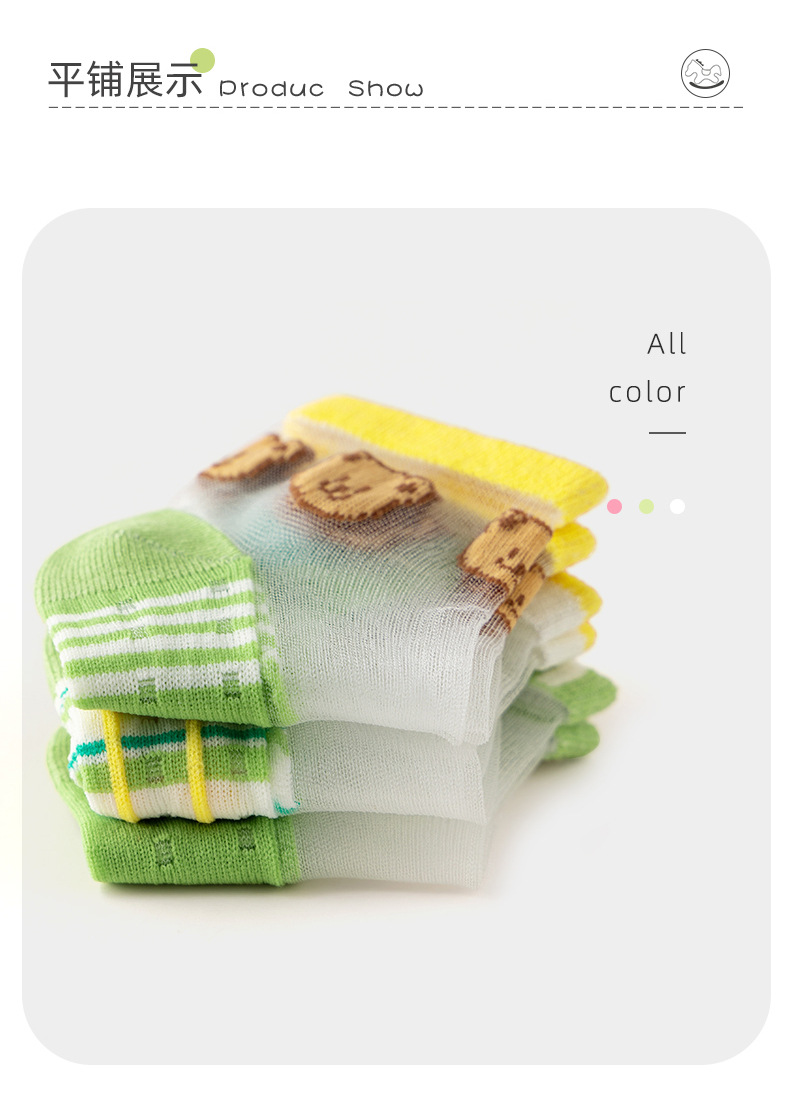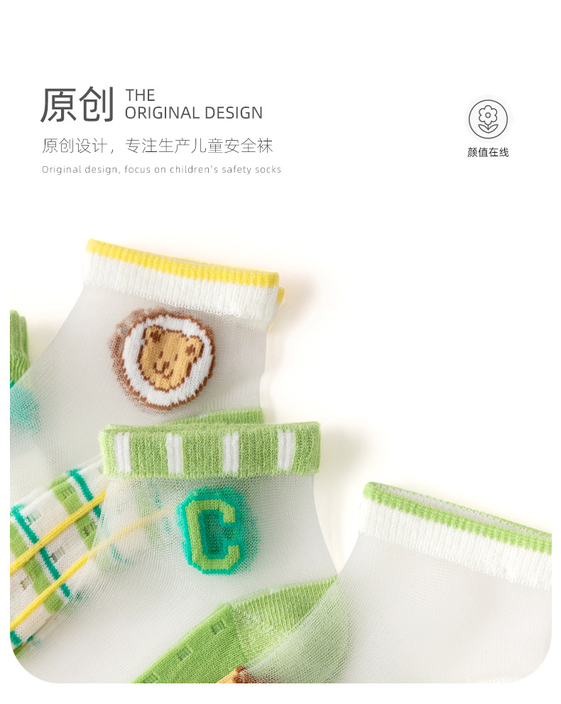 여름 유리 실크 어린이 양말 귀여운 곰 통기성 콜드 카드 실크 양말 도매 아기 양말