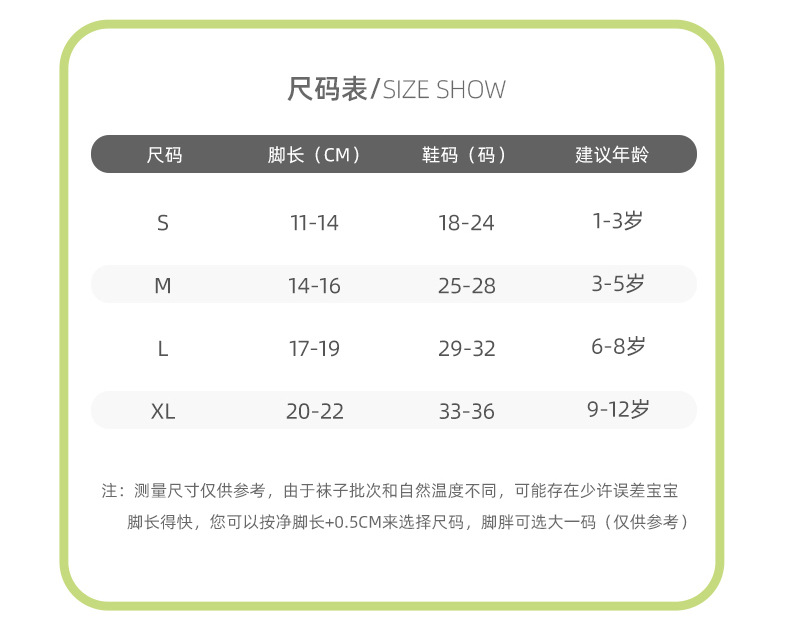 • S 코드 (권장 발 길이 11-14cm 신발 사이즈 18-24 야드))