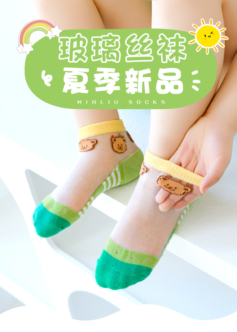 여름 유리 실크 어린이 양말 귀여운 곰 통기성 콜드 카드 실크 양말 도매 아기 양말스토어 가기