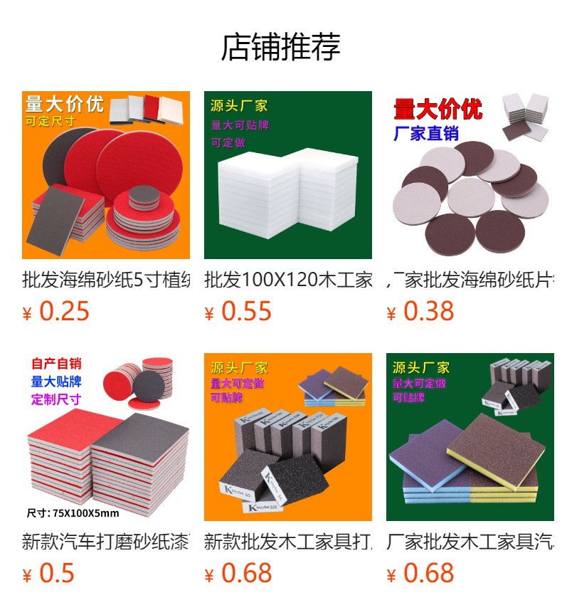 공장 도매 인쇄 100*200 목공 가구 연마 및 연마 길어진 가정 장식 벽 브러시 스폰지 모래 연삭 블록스토어 가기