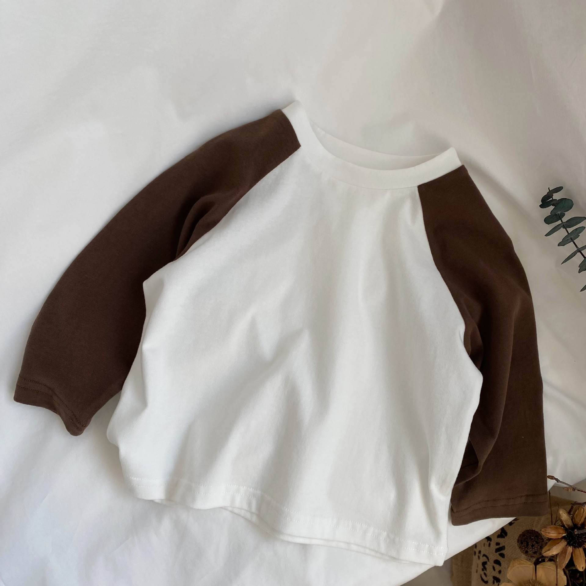 GL-kids 한국 스타일 가을 신작 아동용 컬러 블록 라글란 슬리브 긴팔 티셔츠 남성용 및 여성용 순수 코튼 올 매치 바닥 셔츠