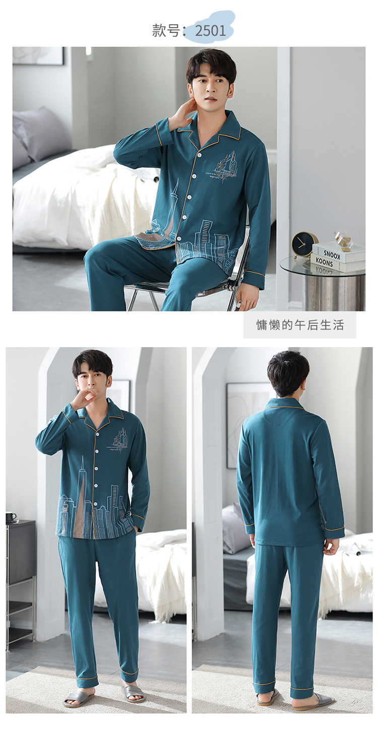 Sujisi 잠옷 남자의 2023 새로운 봄과 가을 남자의 면 긴 소매 플러스 사이즈 봄과 여름 가정 의류 세트스토어 가기
