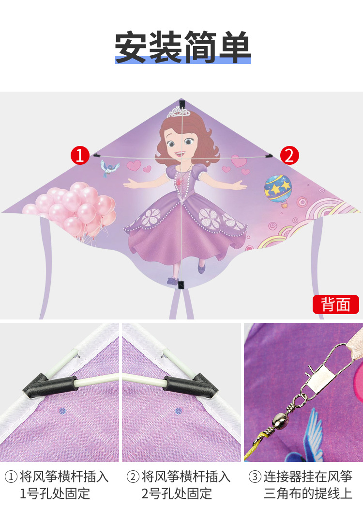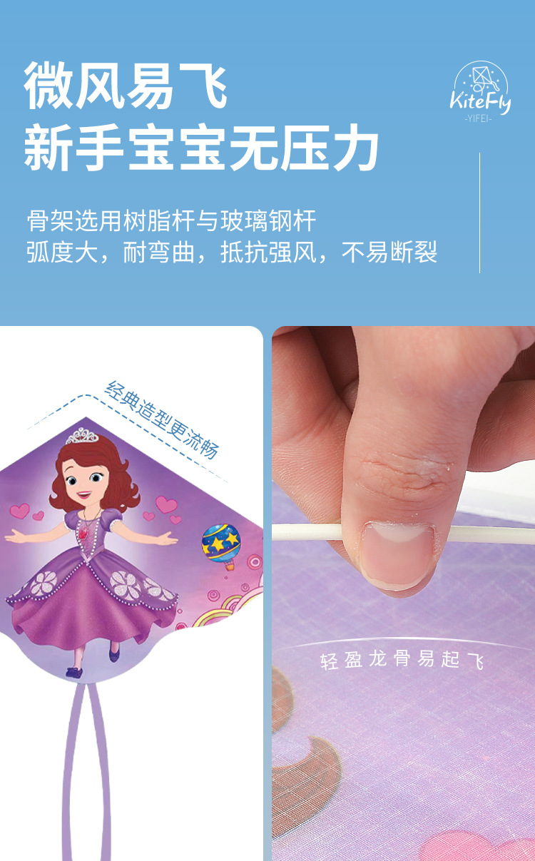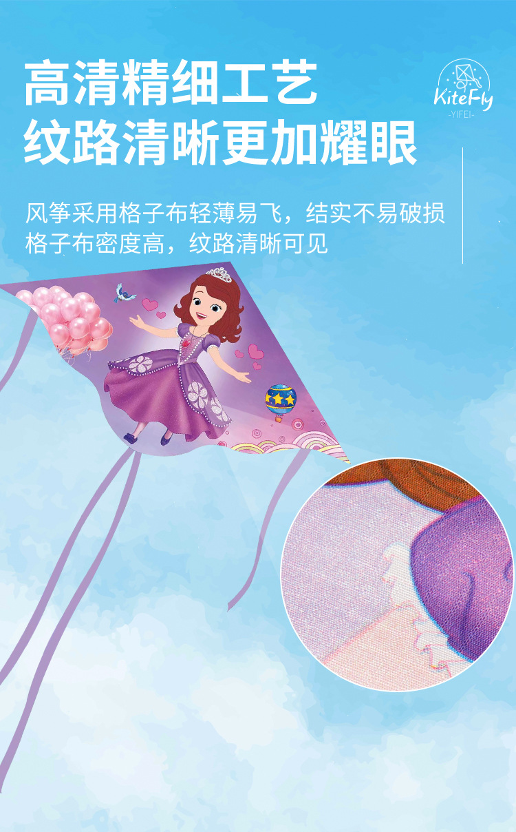 소피아 공주 연 도매 어린이용 줄이 달린 연 2025년 신제품 인기 있는 바람에 쉽게 날리는 어린이 전용스토어 가기