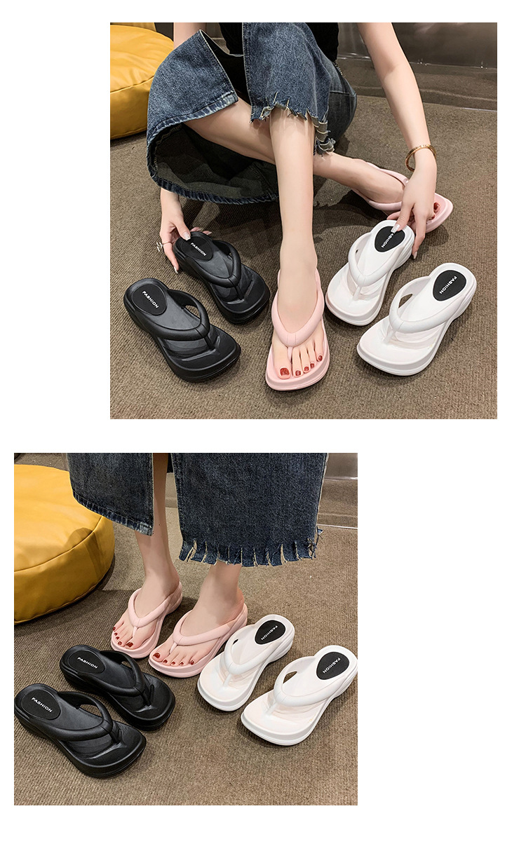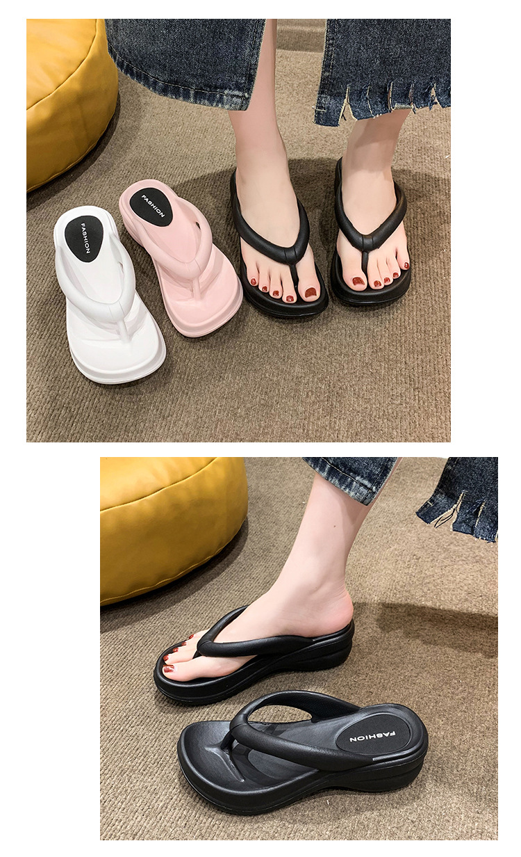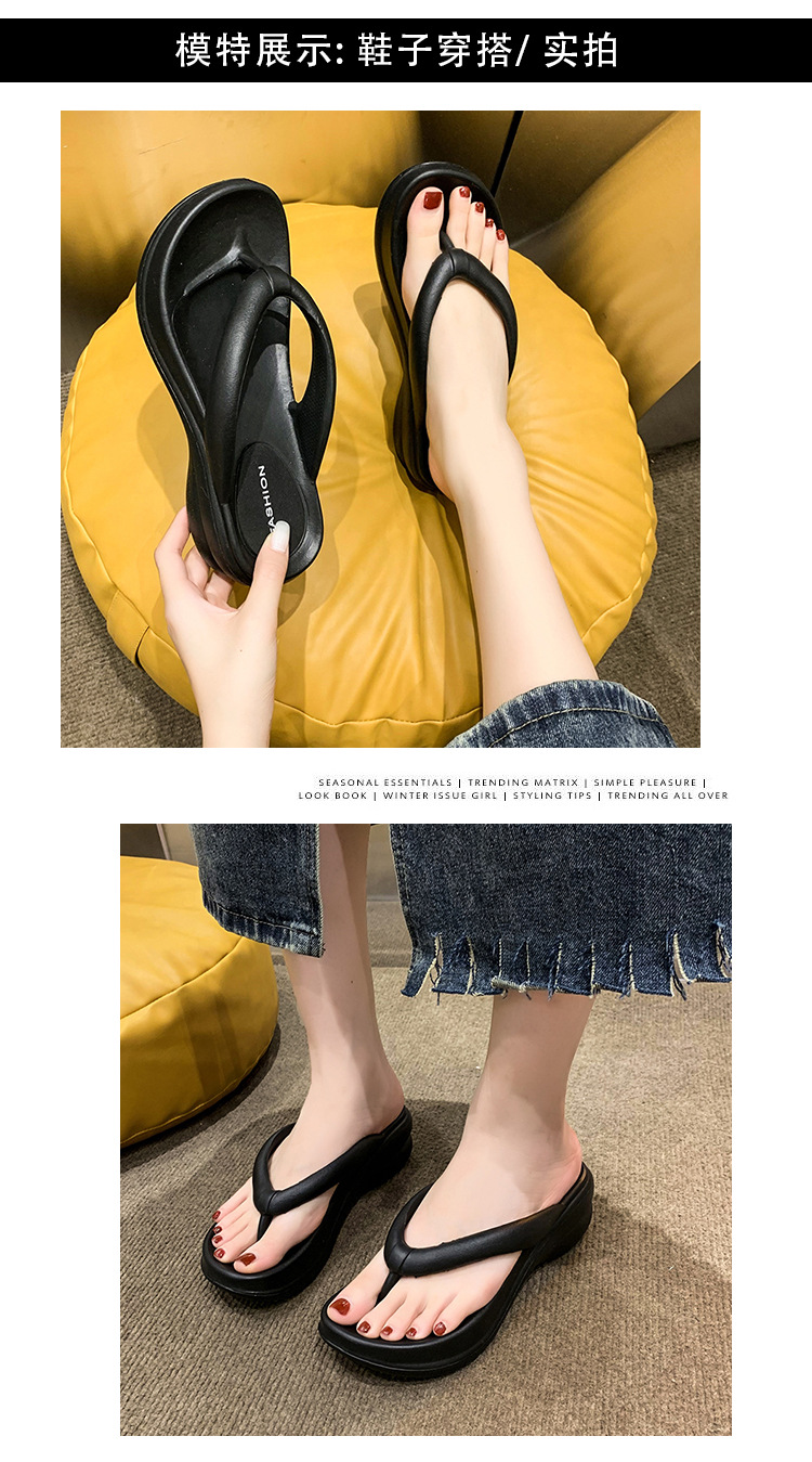 여름 두꺼운 밑창 슬리퍼 여성용 슬리퍼 비치 슬리퍼 미끄럼 방지 아웃웨어 유행 크로스 보더 머핀 플립 플롭