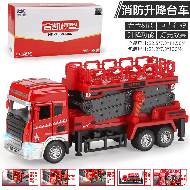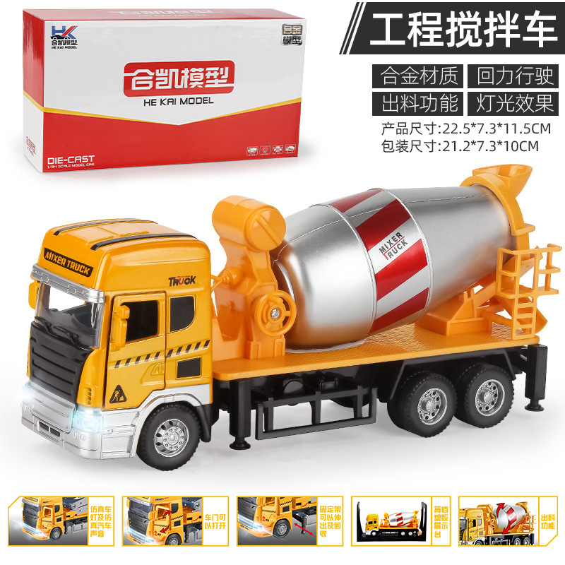 합금 자동차 도시 구조 소방 군사 공학 믹서 트럭 시뮬레이션 백 포스 소리와 경차 모델 어린이 장난감 자동차