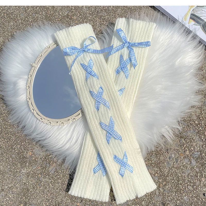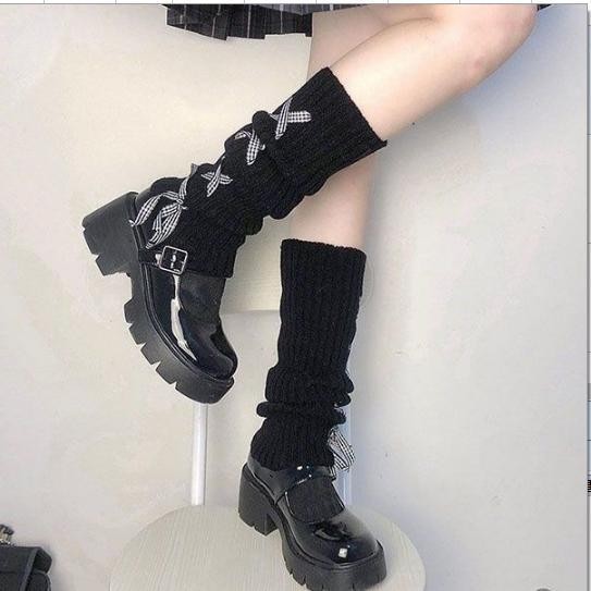 가을과 겨울 따뜻한 리본 니트 스택 양말 일본식 jk 소녀의 새끼 양말 뜨거운 소녀 방한 모든 경기 다리 커버