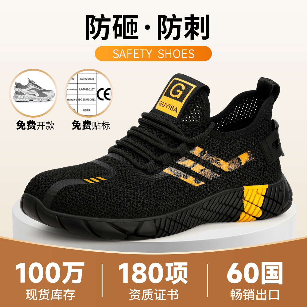 노동 보호 신발 충돌 방지 및 피어싱 방지 여름 비행 짠 큰 구멍 통기성 편안한 부드러운 내마모성 미끄럼 방지 안전 작업 신발스토어 가기