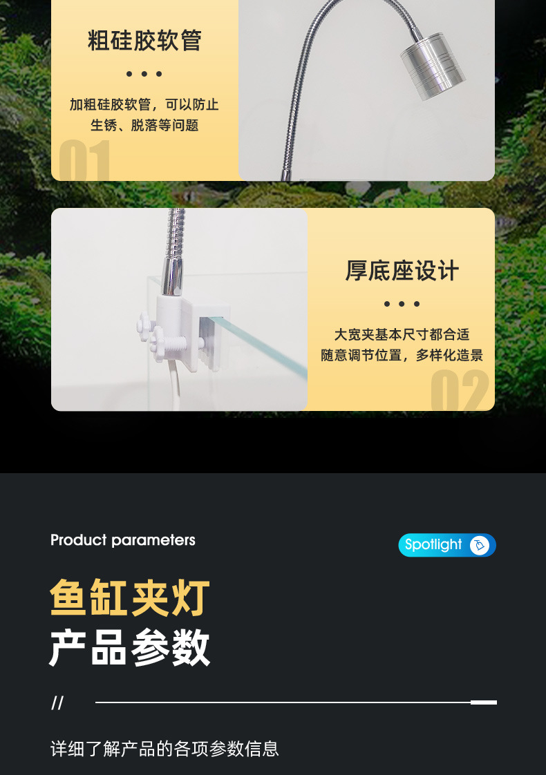 어항 고급 클립 램프 LED 전체 스펙트럼 조명 잔디 탱크 특수 소형 다운 라이트 COB 렌즈 색상 변경 램프 도매