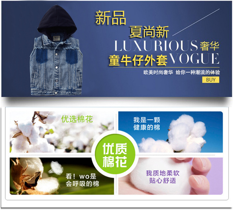 봄과 가을 새로운 아동복 소년의 데님 조끼 어린이 최고 캐주얼 유럽과 미국 어린이 중간 및 큰 어린이 조끼 후드스토어 가기