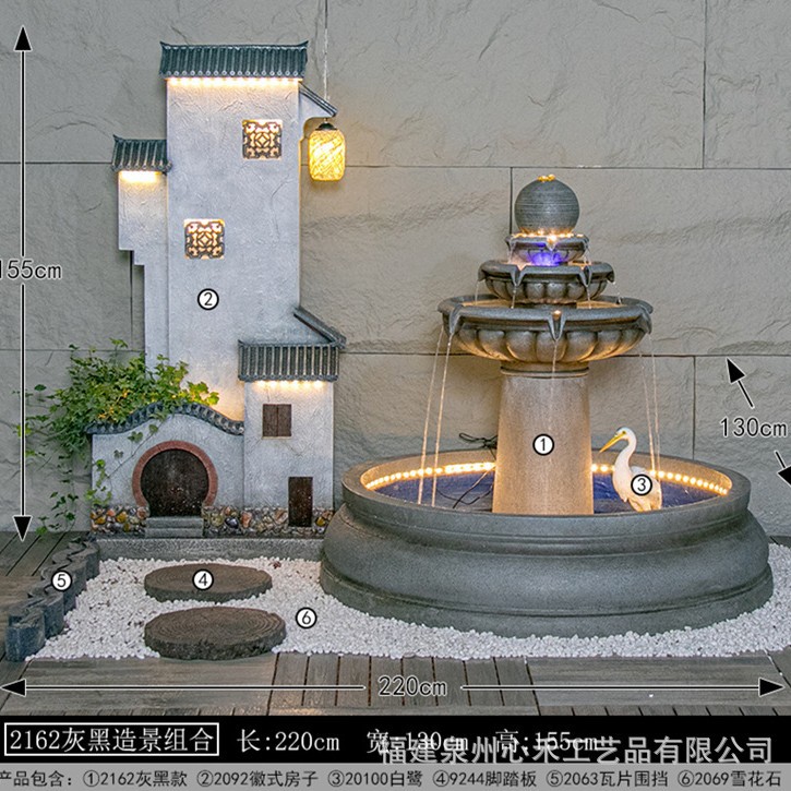 유럽 스타일 흐르는 물 럭키 피쉬 풀 워터 커튼 벽 거실 발코니 사무실 빌라 안뜰 입구 호텔 풍경 장식스토어 가기