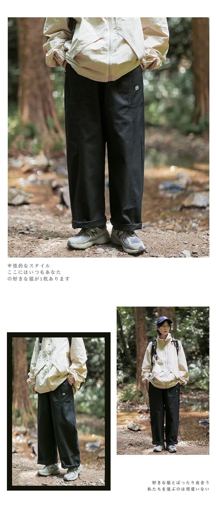 일본식 레터 자수 솔리드 컬러 크록 팬츠 남성용 스트레치 웨이스트 스트레이트 루즈한 올매치 트렌디 브랜드 와이드 레그 캐주얼 팬츠