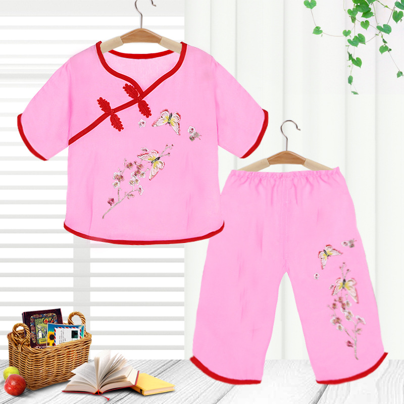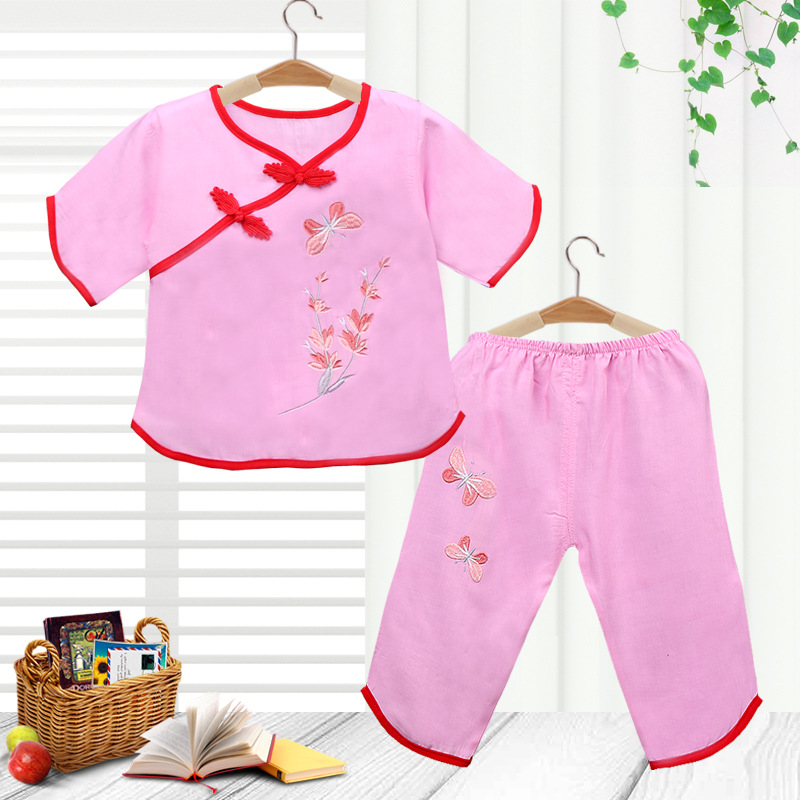 여자 잠옷 여름 면 실크 얇은 세트 실크 실크 여자 단색 자수 어린이 에어컨 가정 의류
