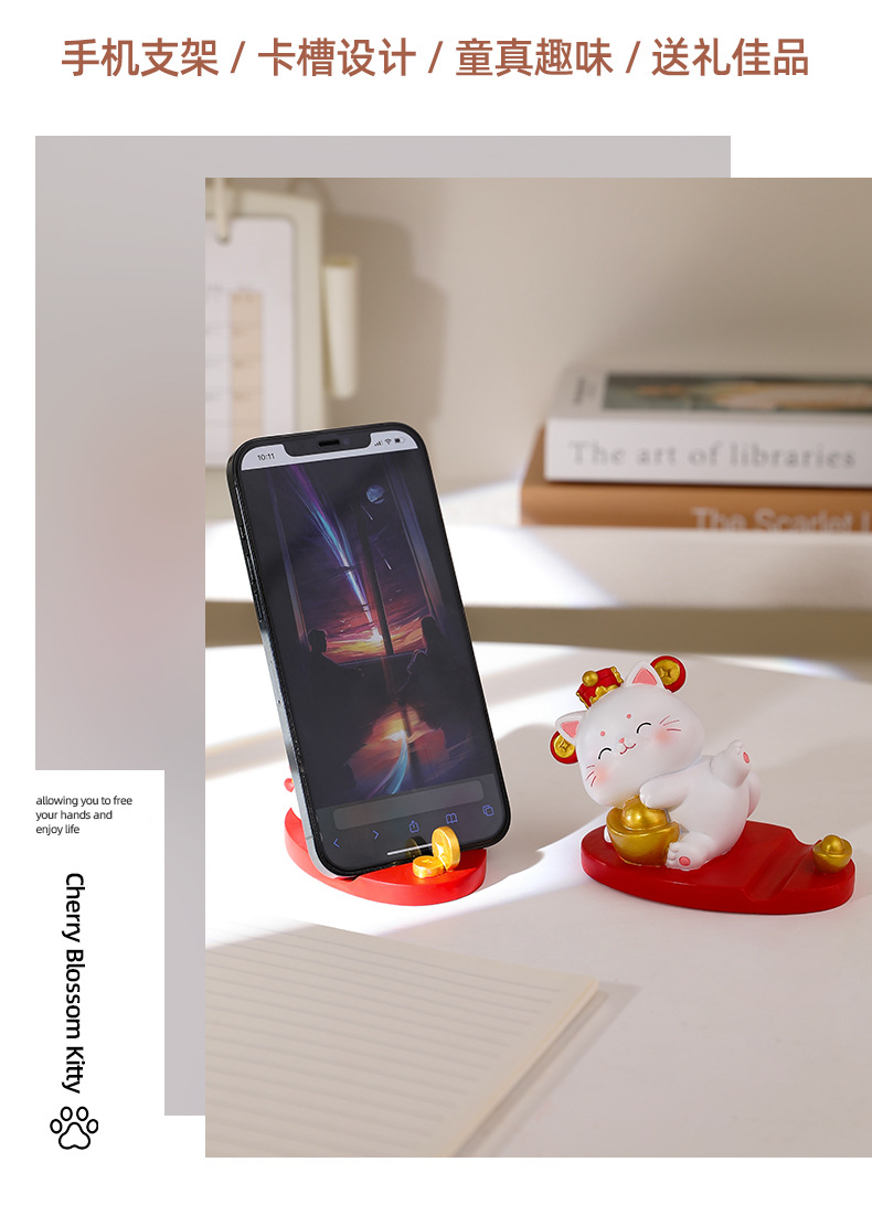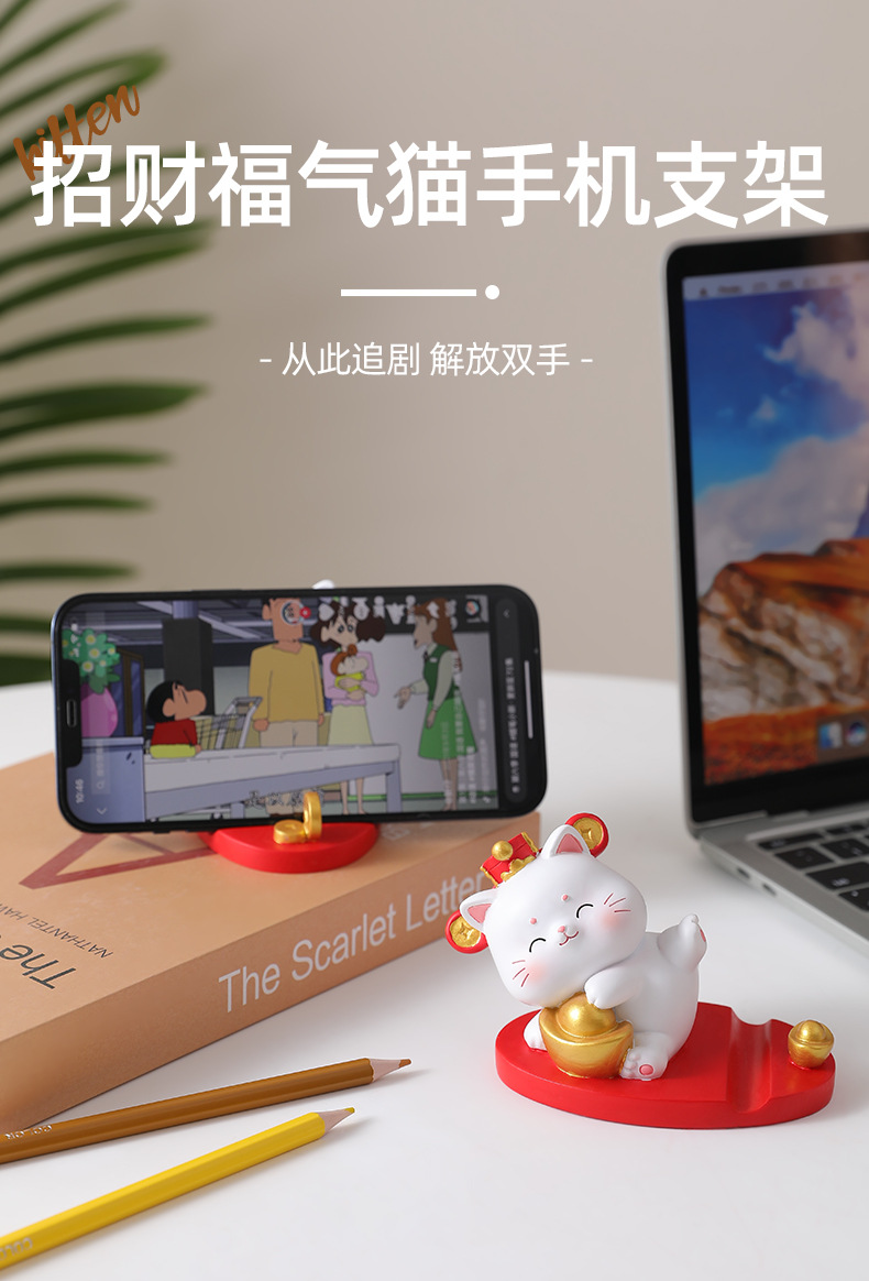 귀여운 행운의 고양이 휴대 전화 스탠드 만화 창조적 인 데스크탑 태블릿 게으른 사람 지원 스탠드 데스크탑 장식품 커플 선물