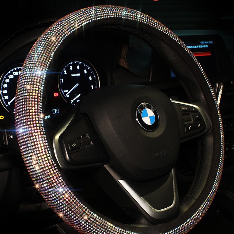 새로운 패션 풀 다이아몬드 자동차 스티어링 휠 커버 남성과 여성 사계절 유니버설 크리스탈 플래시 핫 드릴링 미끄럼 방지 자동차 핸들 커버스토어 가기
