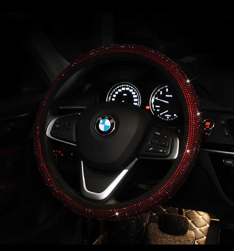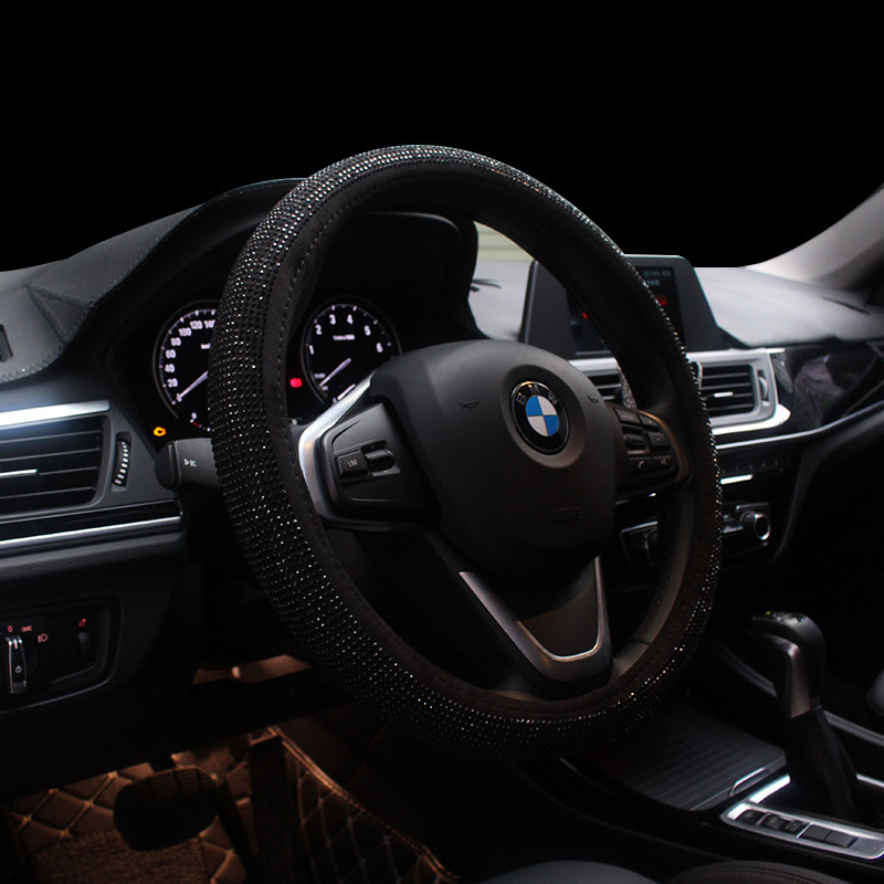 새로운 패션 풀 다이아몬드 자동차 스티어링 휠 커버 남성과 여성 사계절 유니버설 크리스탈 플래시 핫 드릴링 미끄럼 방지 자동차 핸들 커버