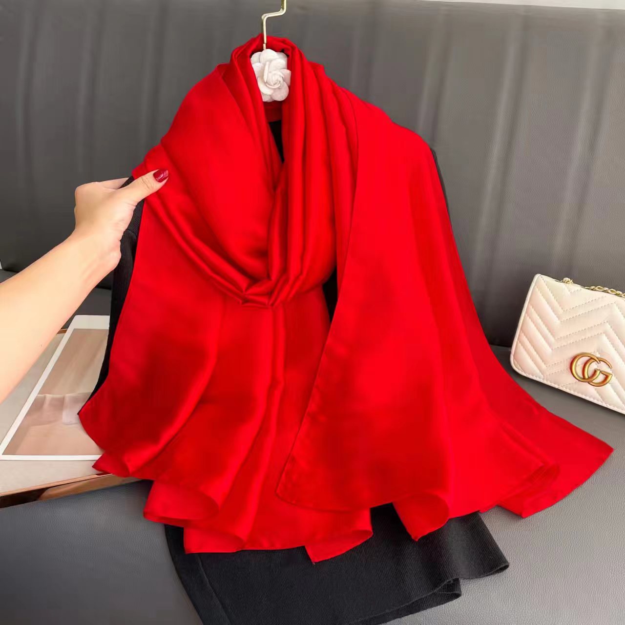 새로운 단색 실크 스카프 한국 봄과 가을 자외선 차단제 비치 스카프 여성용 실크 스카프 외부 에어컨 숄 크로스 보더 헤드스토어 가기