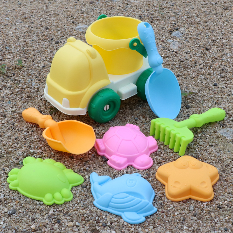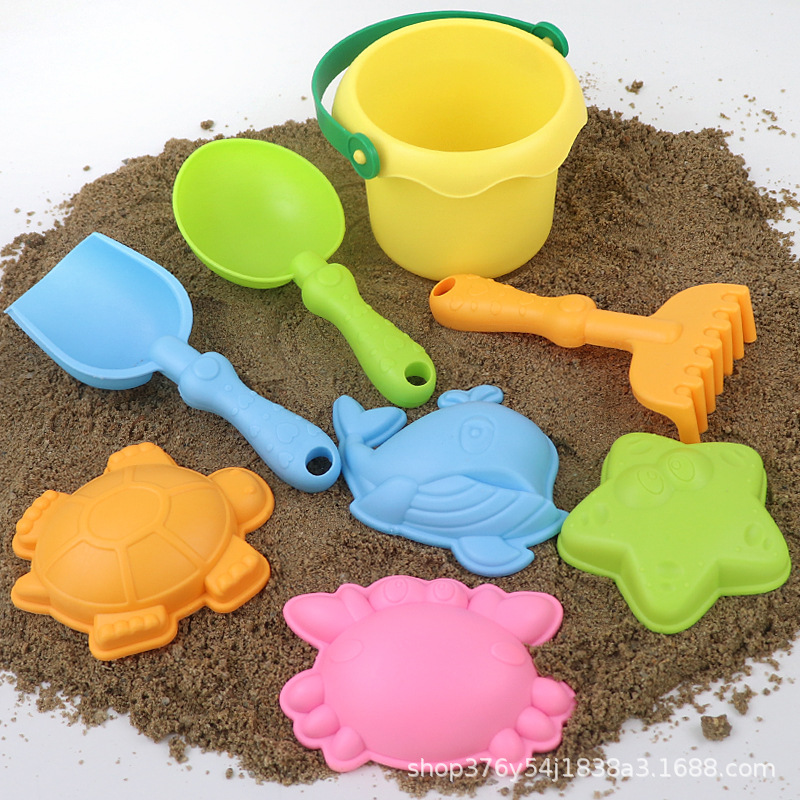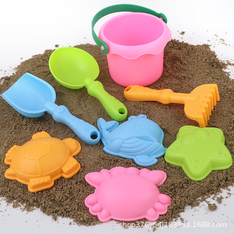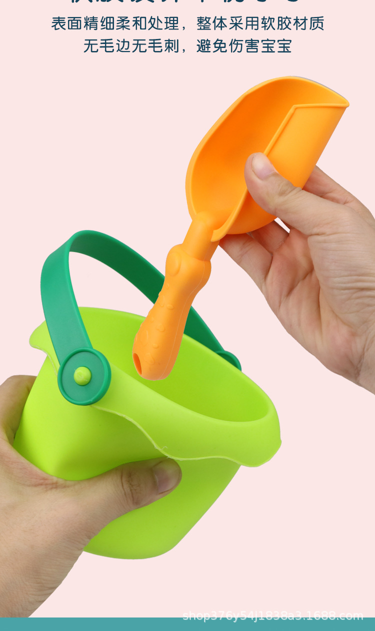 어린이의 낙하 방지 부드러운 고무 비치 버킷 세트 아기의 작은 삽 모래 파기 도구 어린이 해변 물 놀이 모래 장난감