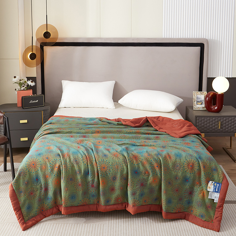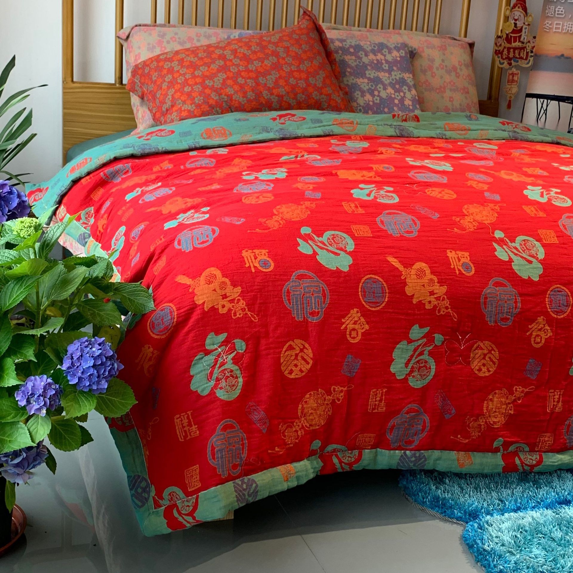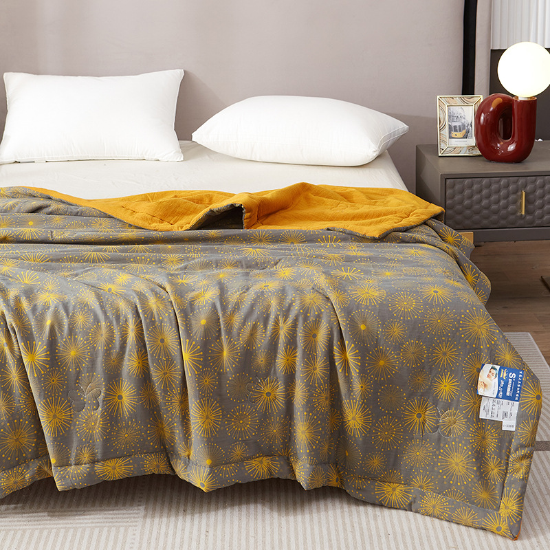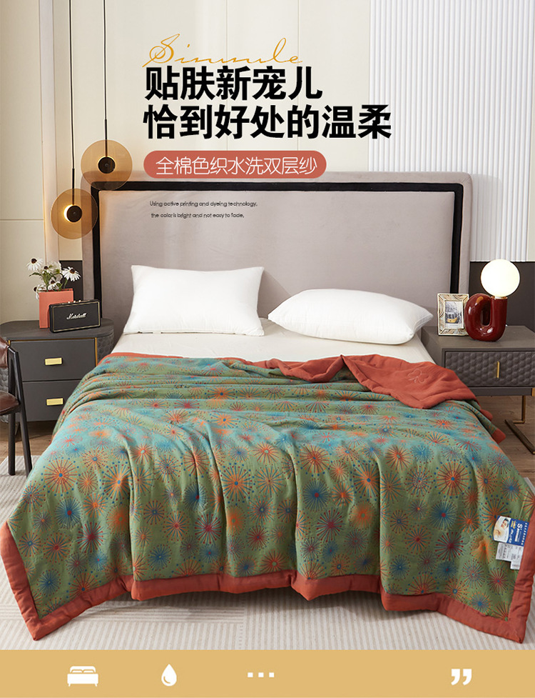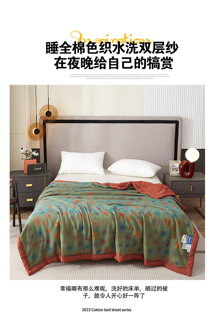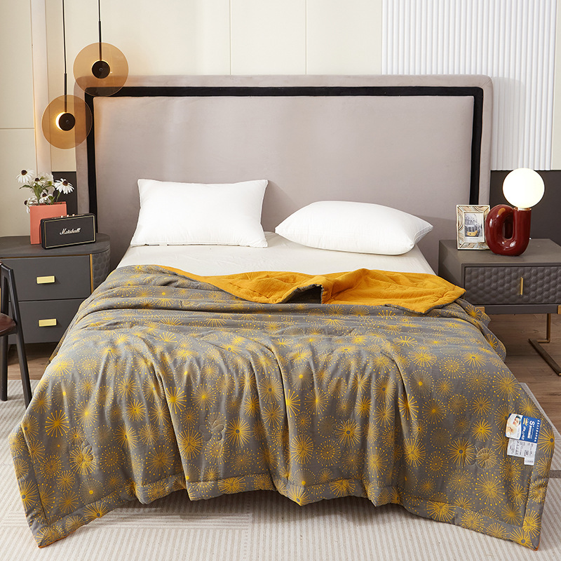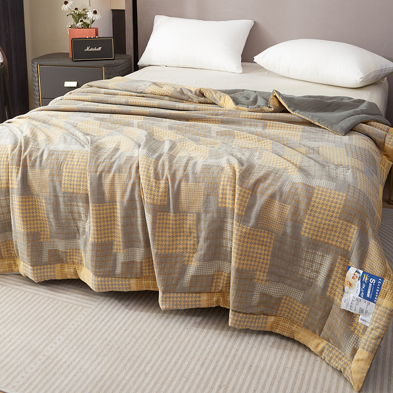 면 더블 레이어 원사 여름 퀼트 순수 코튼 세척 면 원사 염색 여름 쿨 퀼트 싱글 더블 인용 콩 섬유 얇은 이불