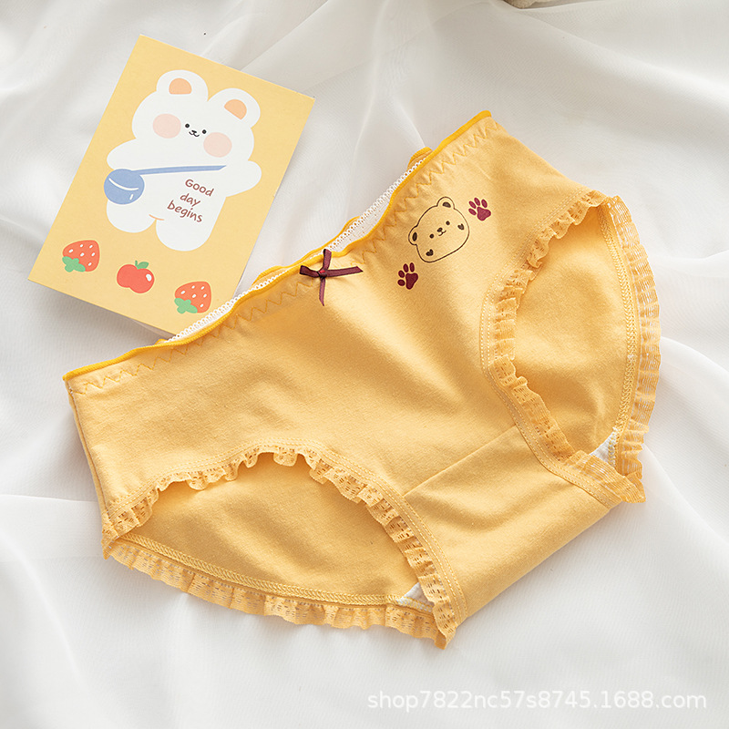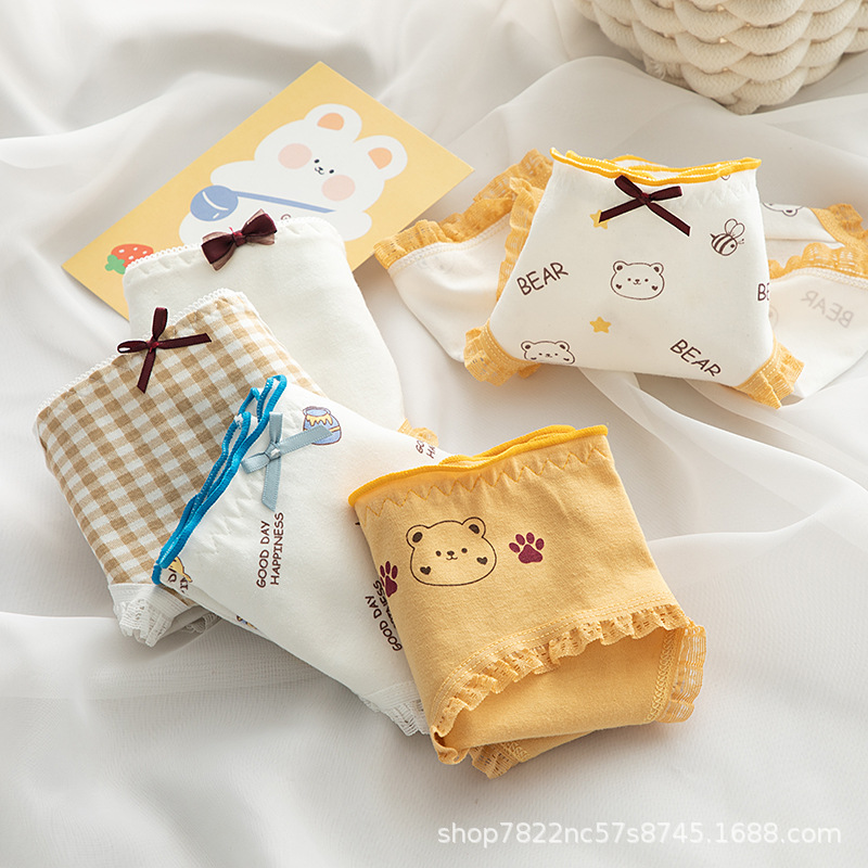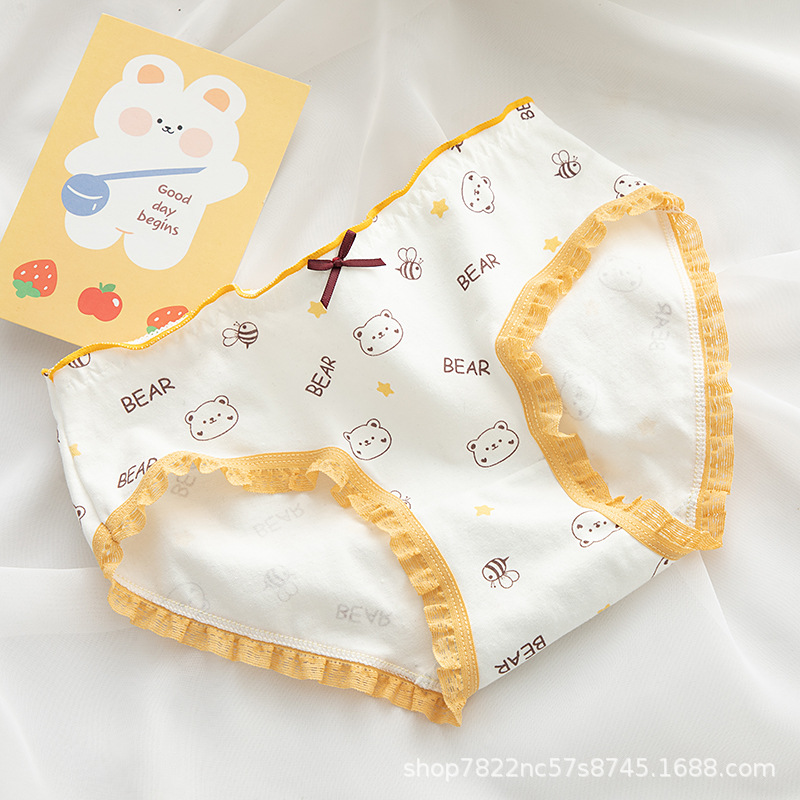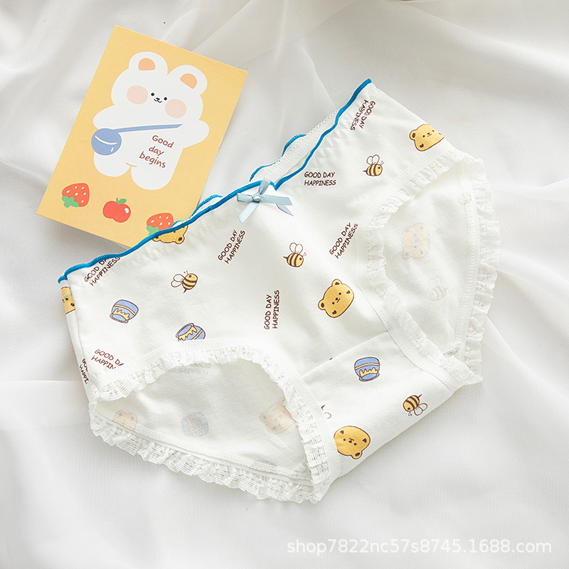 일본 곰 꿀 귀여운 만화 소녀 속옷 면 가랑이 허리 엉덩이 통기성 숙녀 브리프 도매스토어 가기
